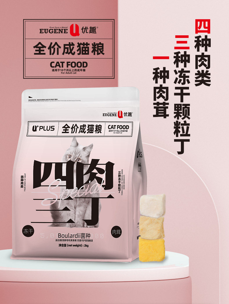 Youqu Adult Cat Food 2kg Four Meats Three Cubes Freeze-Dried Adult Cat Food 2kg Added Probiotics Meat Floss and Meat Paste