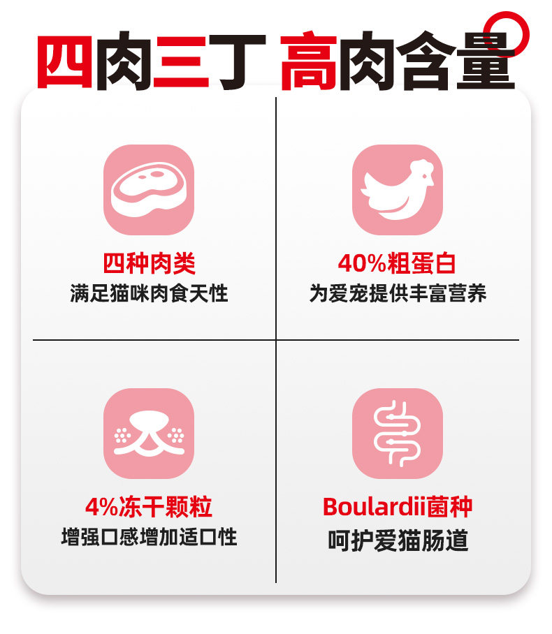 | Food Taste | Four Types of Meat, Three Freeze-Dried, Grain-Free Probiotic Foods,Four Types of Meat, Three Freeze-Dried, Grain-Free Probiotic Food + Cat Strips 15g*40,Four Types of Meat, Three Freeze-Dried, Grain-Free Probiotic Food + Salmon & Fish Oil 35g*8 Pieces + Nutritional Soup Bag 60g*6,Four Types of Meat, Three Freeze-Dried, Grain-Free Probiotic Food + Salmon & Fish Oil 35g*8 Pieces + Cat Rice 50g*20 |