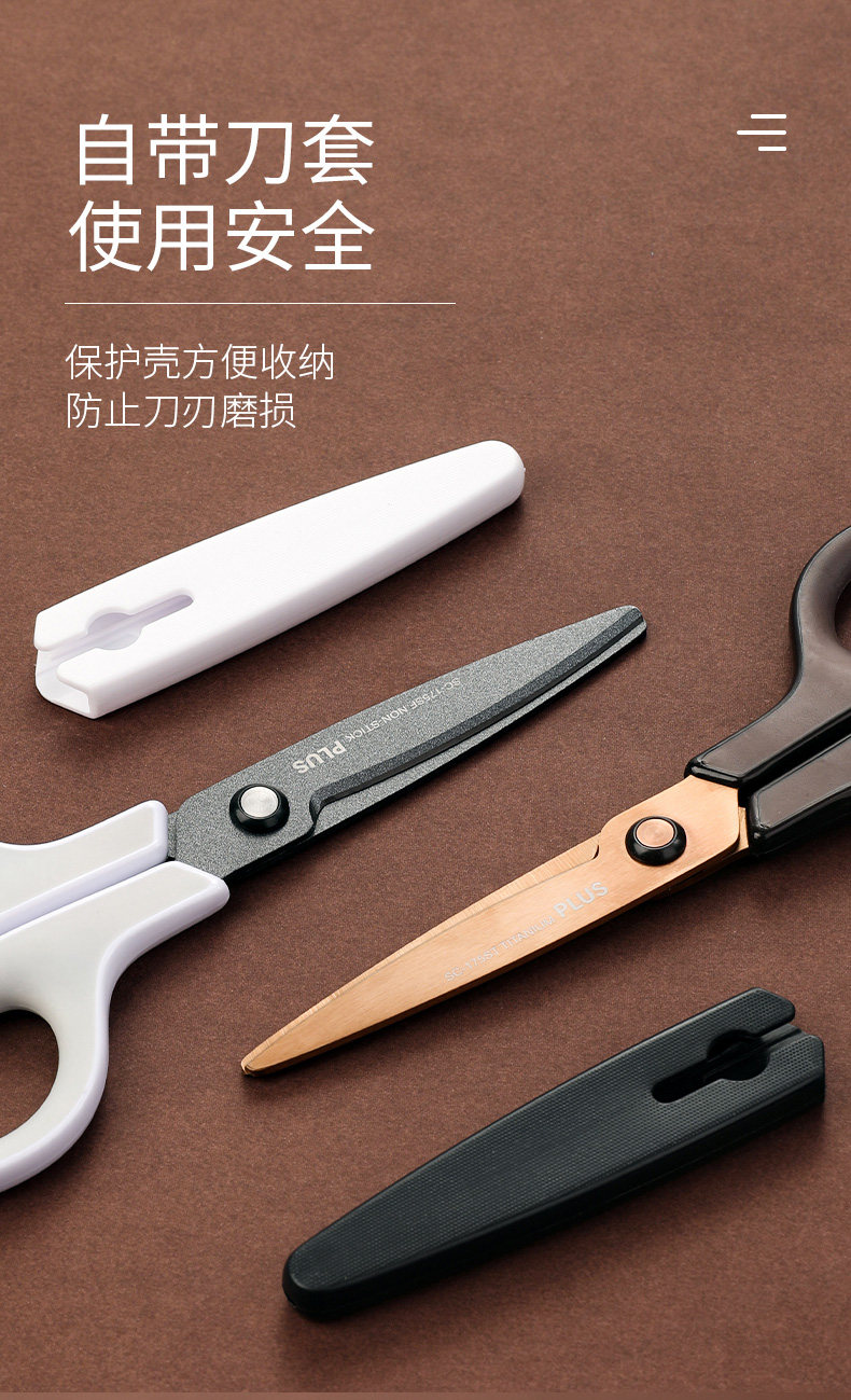 Japanese Plus Scissors 175 Titanium-Coated Non-Stick Household Scissors with Protective Cover for Students, Portable Stainless Steel Scissors for Kitchen, Food, Stationery, and Tape Cutting
