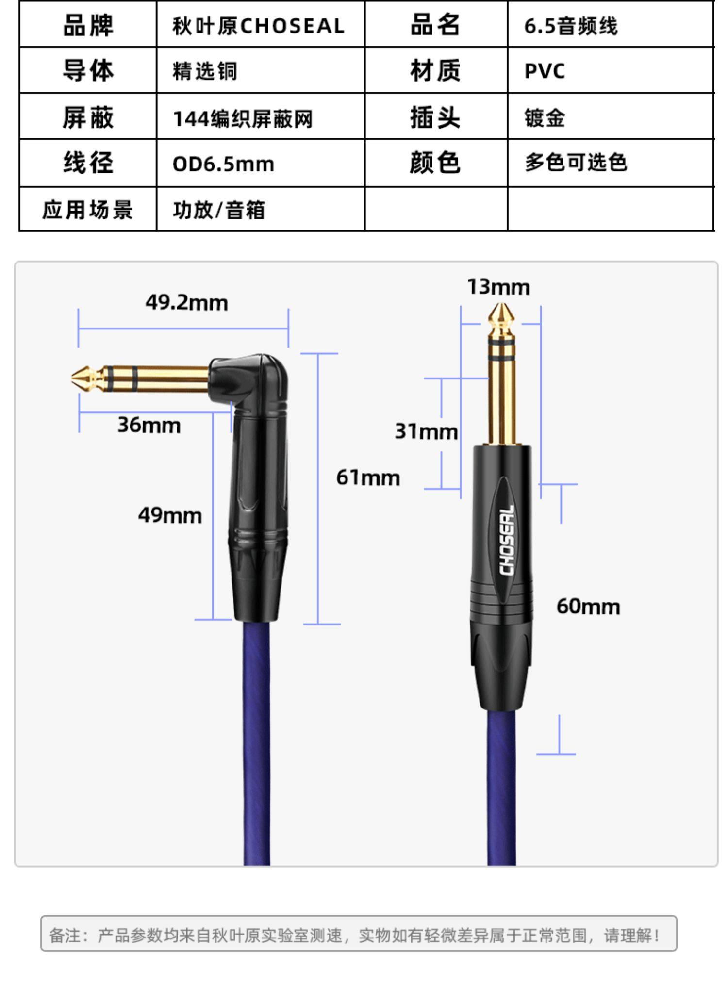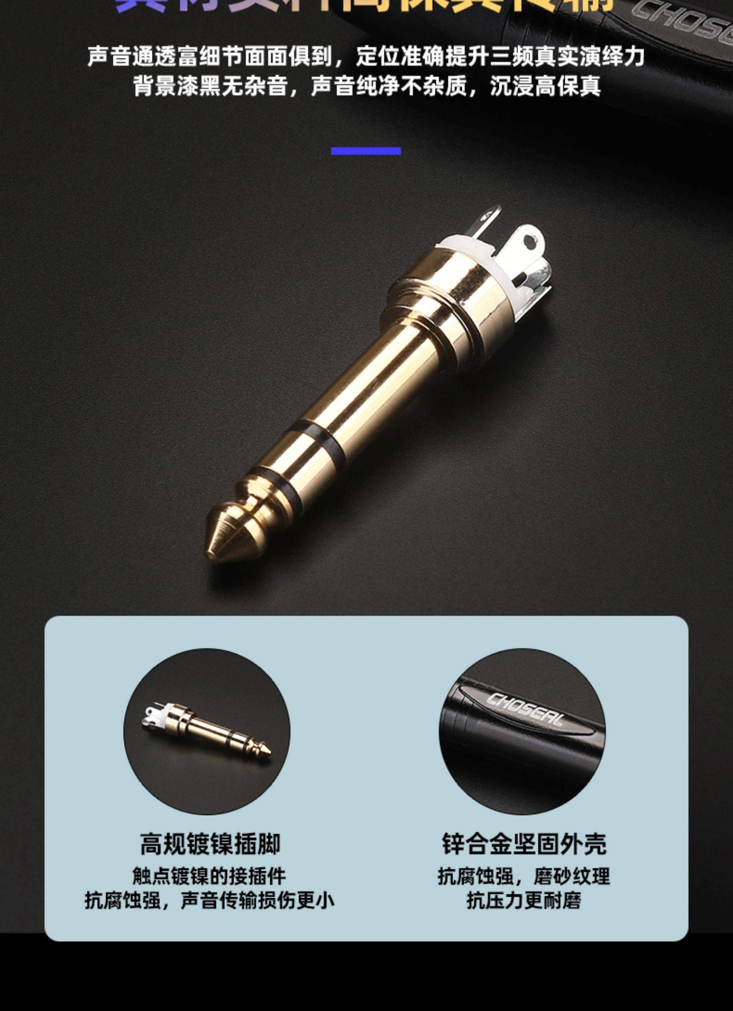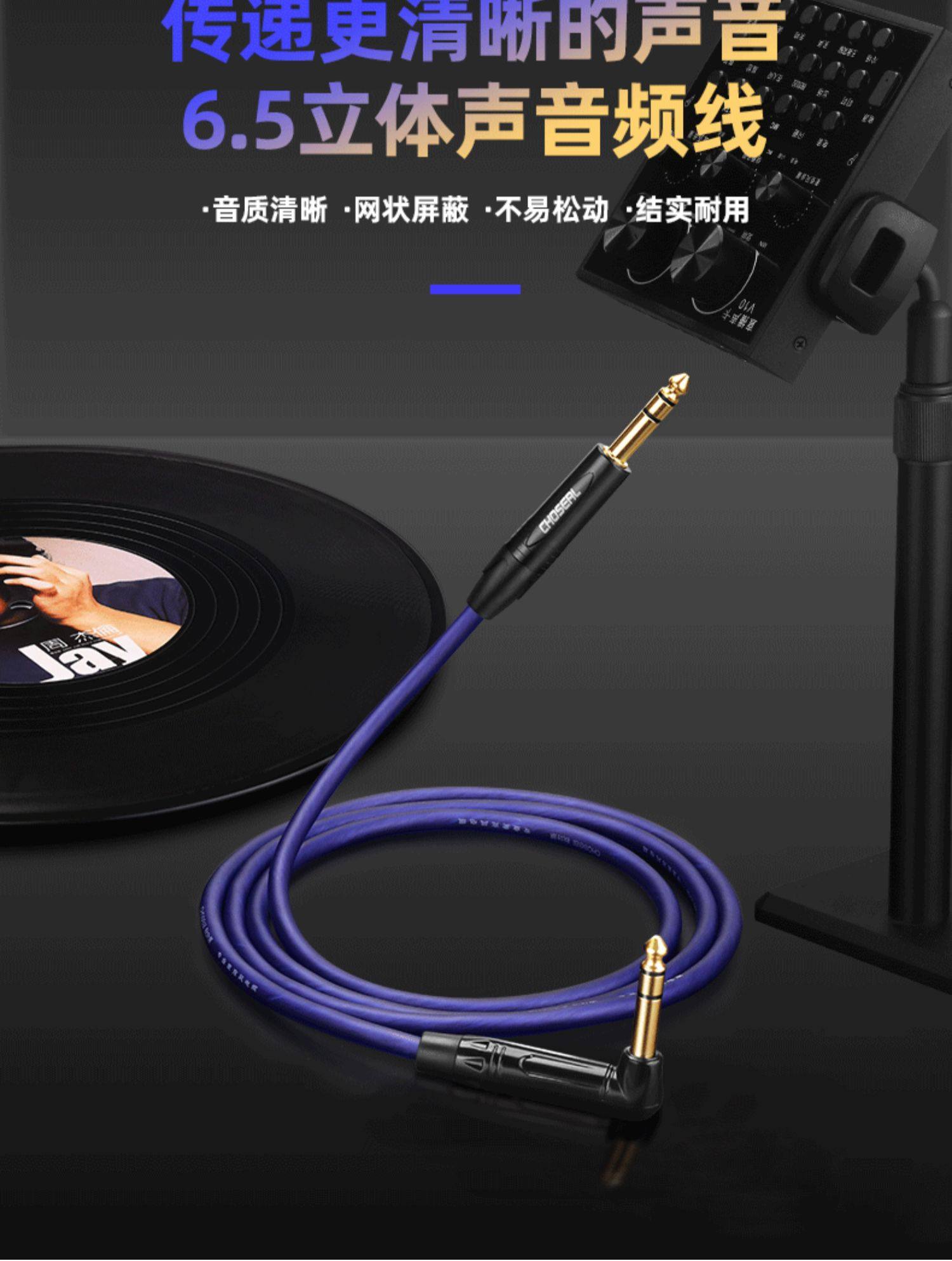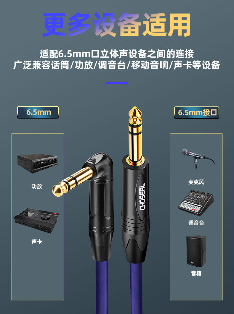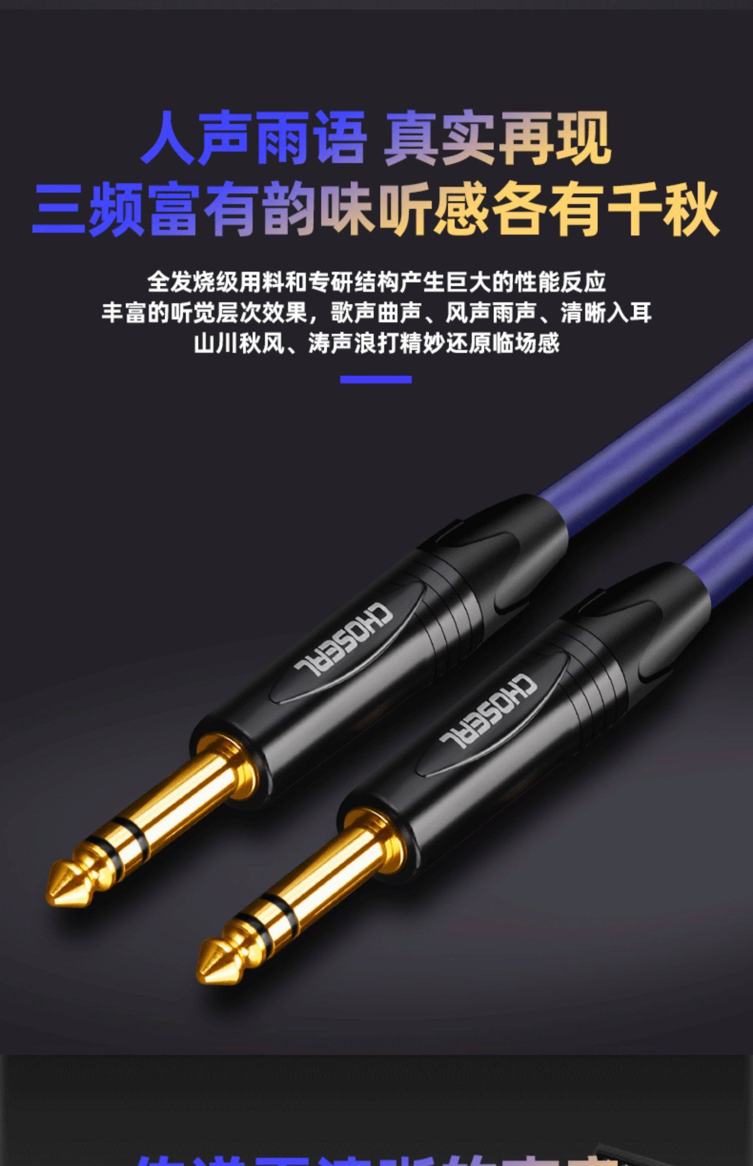 Akihabara Dual-Channel 6.5 Audio Cable Male-To-Male Stereo Connection Cable 6.35 Large Three-Core Balanced Recording Cable