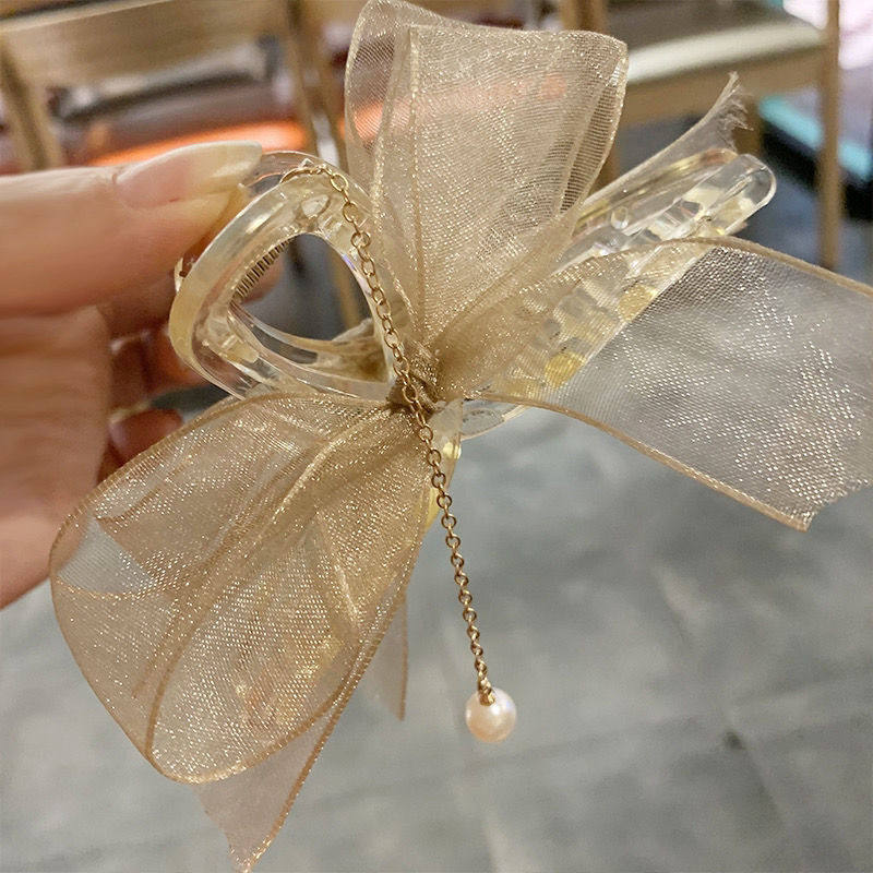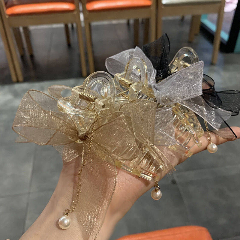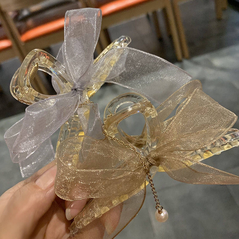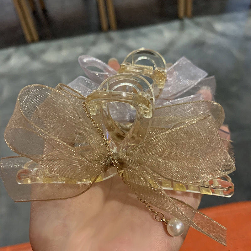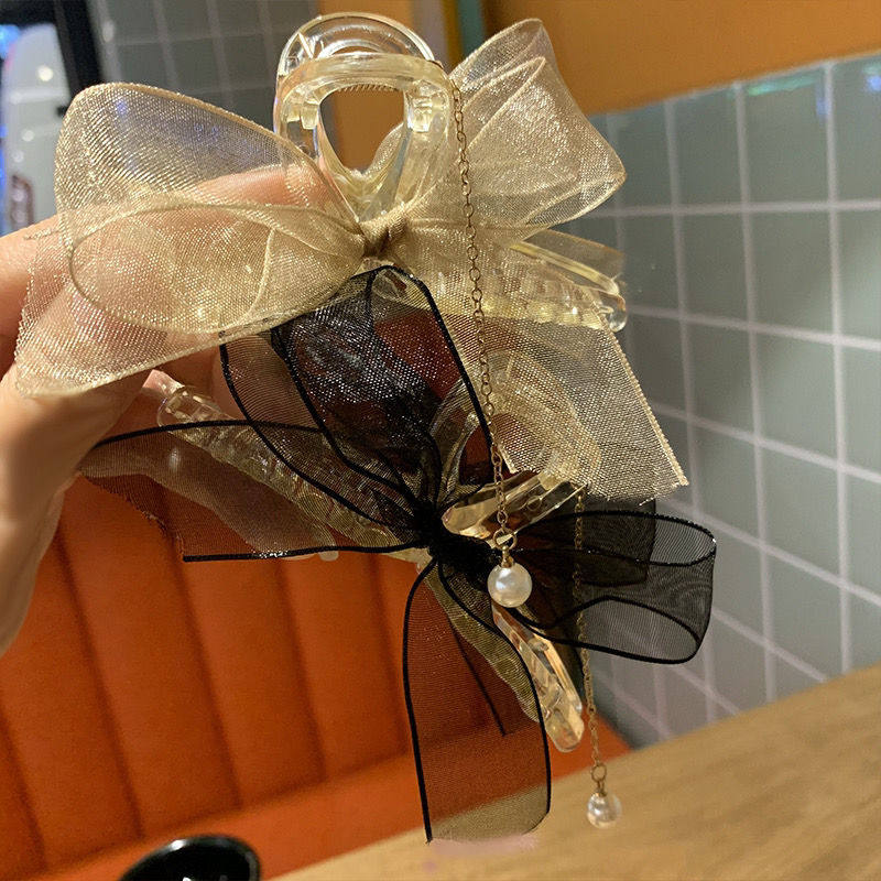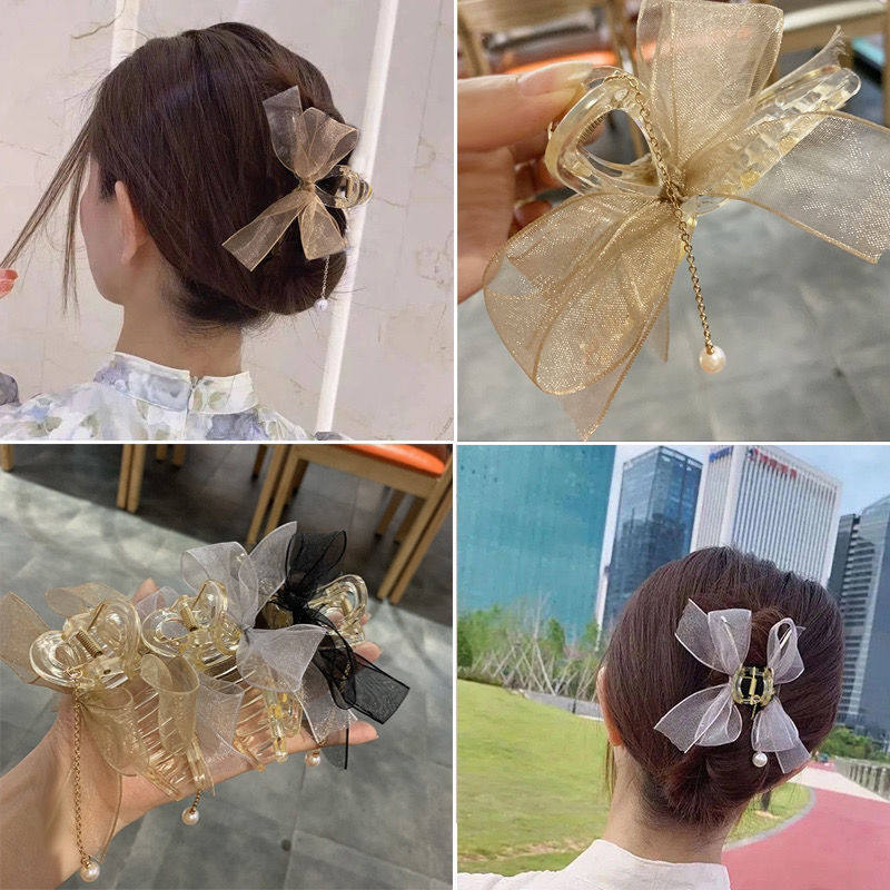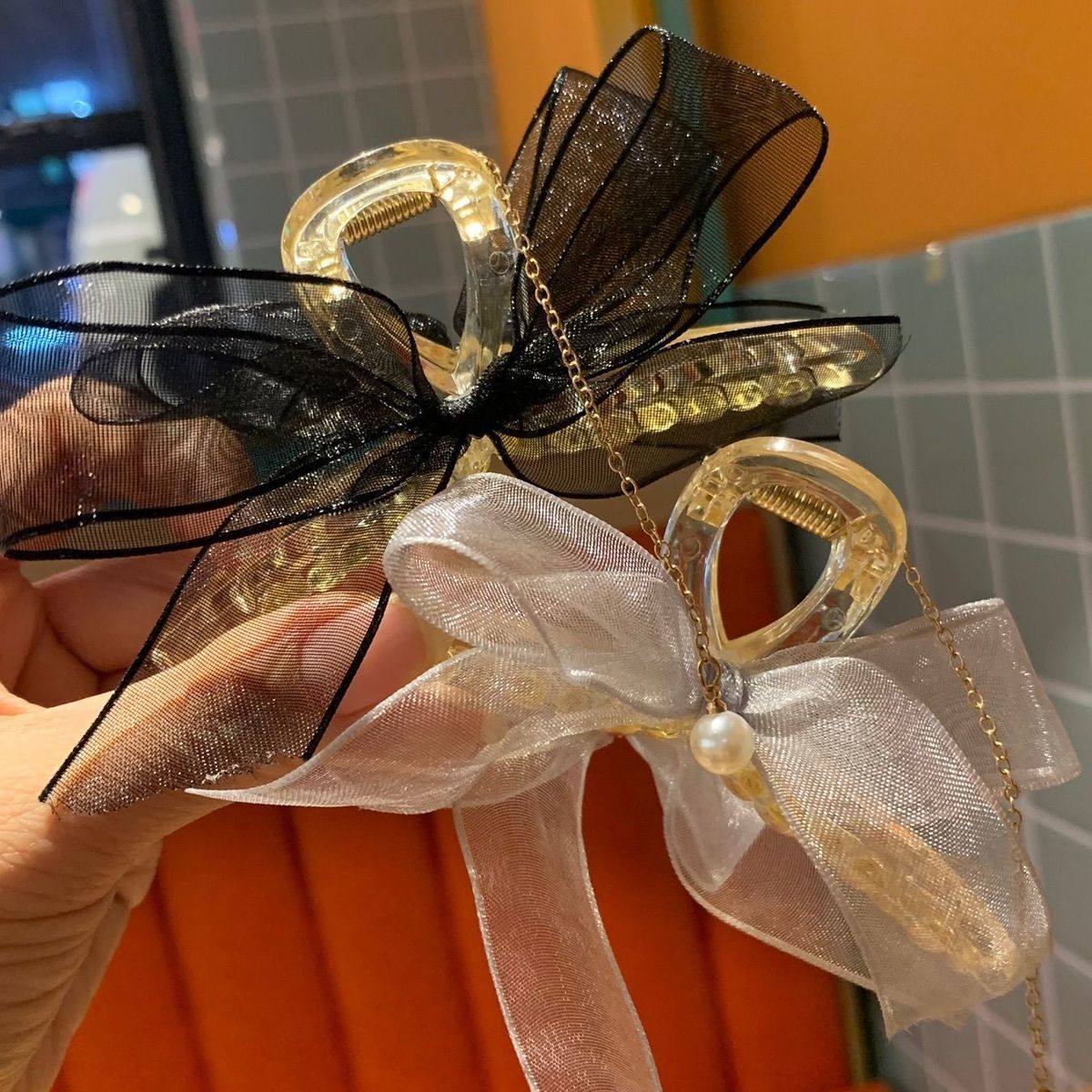 2022 Mesh Lace Bow Hair Clip for Women, Summer Updo Hair Clip for the Back of the Head, Large Shark Clip