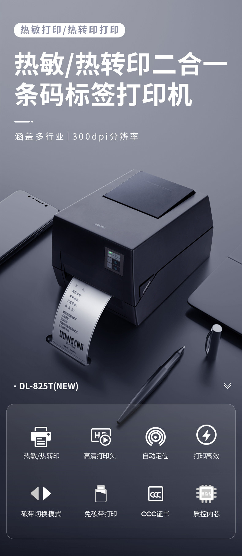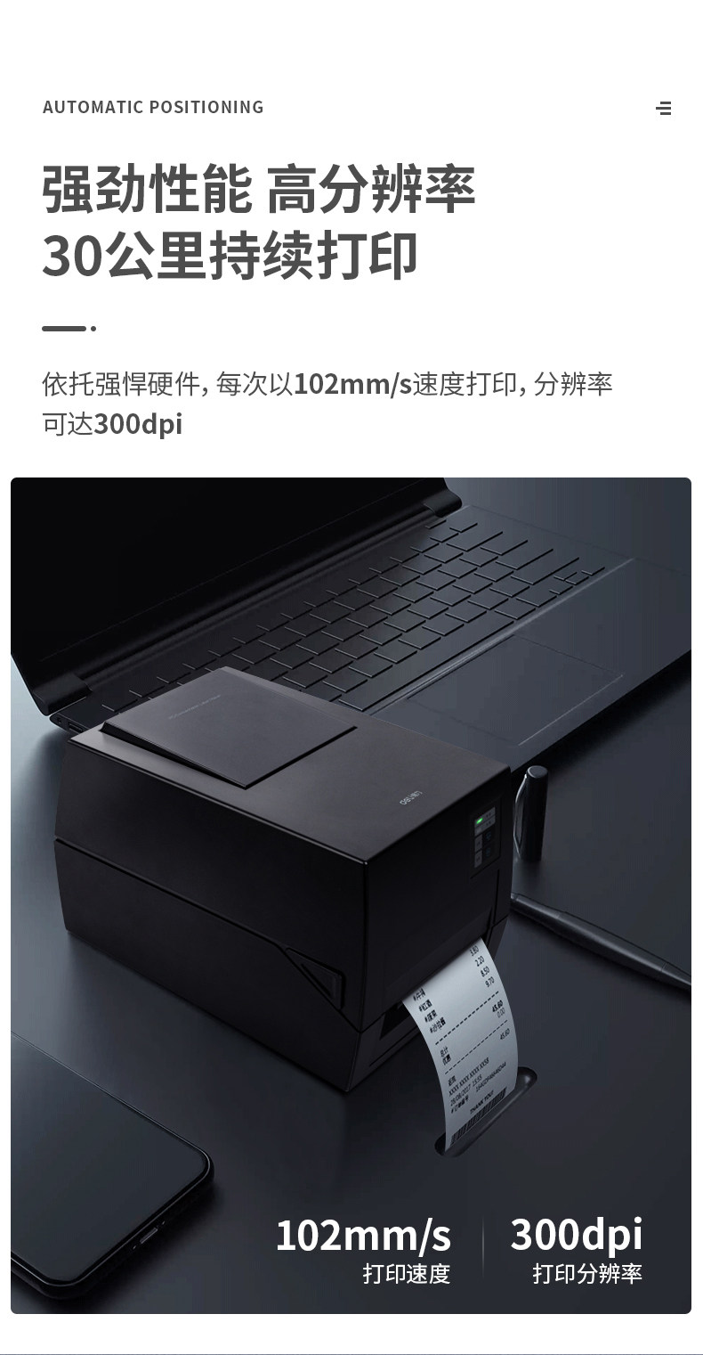 Deli Label Printer Thermal Transfer Printer Ribbon Barcode Printer Silver Paper Clothing Adhesive Printer Certificate Label Coated Paper Thermal Printer Thermal Transfer Thermal