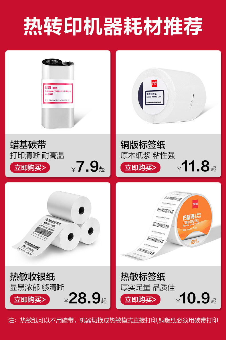 | Color Classification | Standard Configuration for Computer Models[Thermal Ribbon Double Printing]888T,[Computer Model 888t]+110Mm*70M Enhanced Wax-Based Ribbon,[Computer Model 888t]+110Mm70M Wax-Based Ribbon 1 Roll +100*80Mm Coated Paper,Bluetooth Model Comes Standard[Computer/Mobile Connection-Thermal Ribbon Dual Printing]888TW,[Bluetooth Model 888Tw]+110Mm*70M Wax-Based Ribbon,[Bluetooth Model 888Tw]+1 Roll of 110Mm*70M Wax-Based Ribbon + 100*80mm Coated Paper,Enhanced Computer Version[Computer Connection Thermal Ribbon Double Printing]820TS,[Enhanced Version 820Ts]+110Mm*300M Wax-Based Ribbon Roll,[Enhanced Version 820Ts]+1 Roll of 110Mm*300M Wax-Based Ribbon + 100*80mm Coated Paper,✅Hot Selling Recommendation[Standard Configuration for Hd Models]825TS,[Hd Model 825Ts]+110Mm*300M Wax-Based Ribbon Roll,[Hd Model 825Ts]+1 Roll of 110Mm*300M Wax-Based Ribbon + 100*80mm Coated Paper |