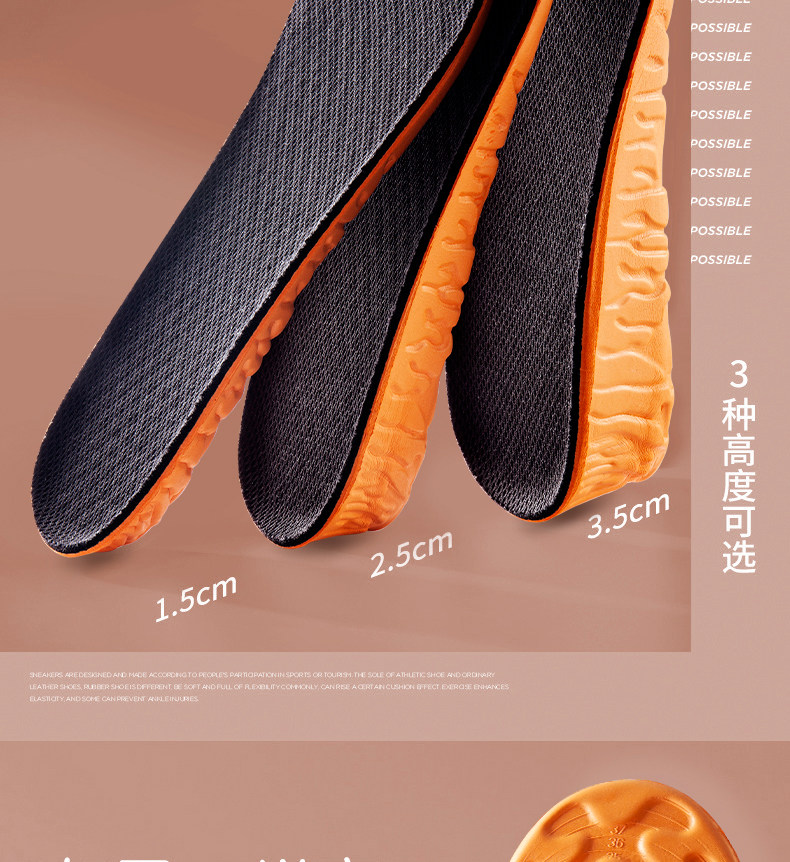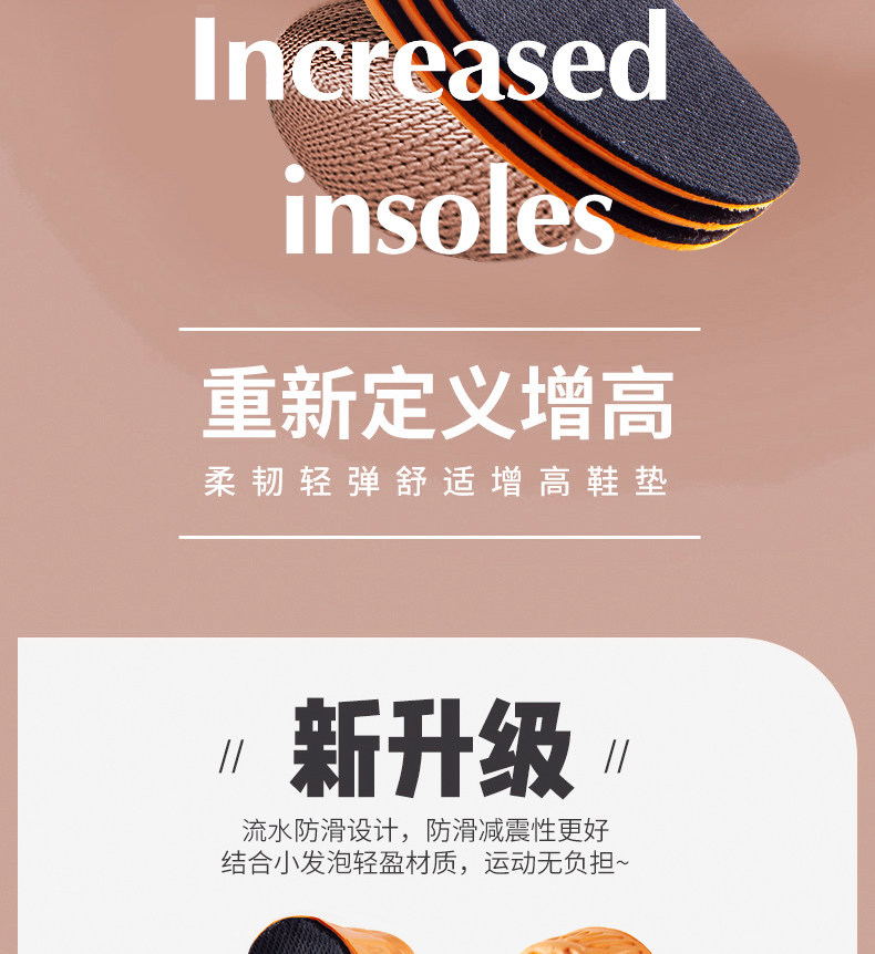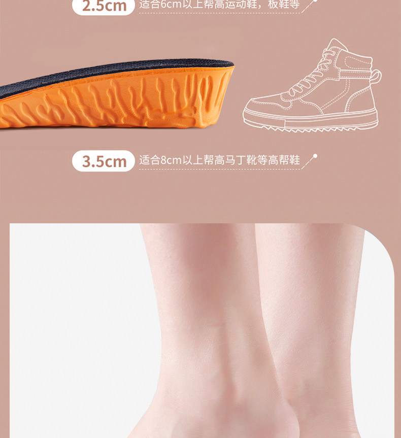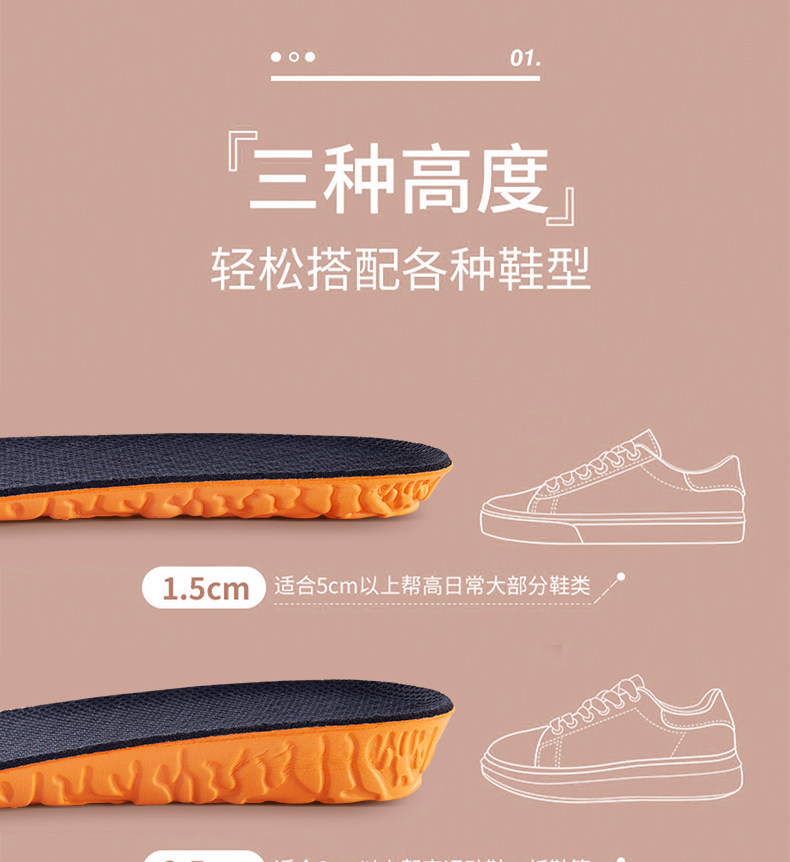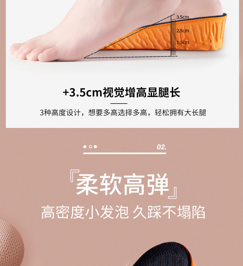 Popcorn Sports Height-Increasing Insoles for Men and Women, Sweat-Absorbing, Invisible, Deodorizing, Shock-Absorbing, Breathable, Soft-Soled, High-Elasticity Height-Increasing Artifact