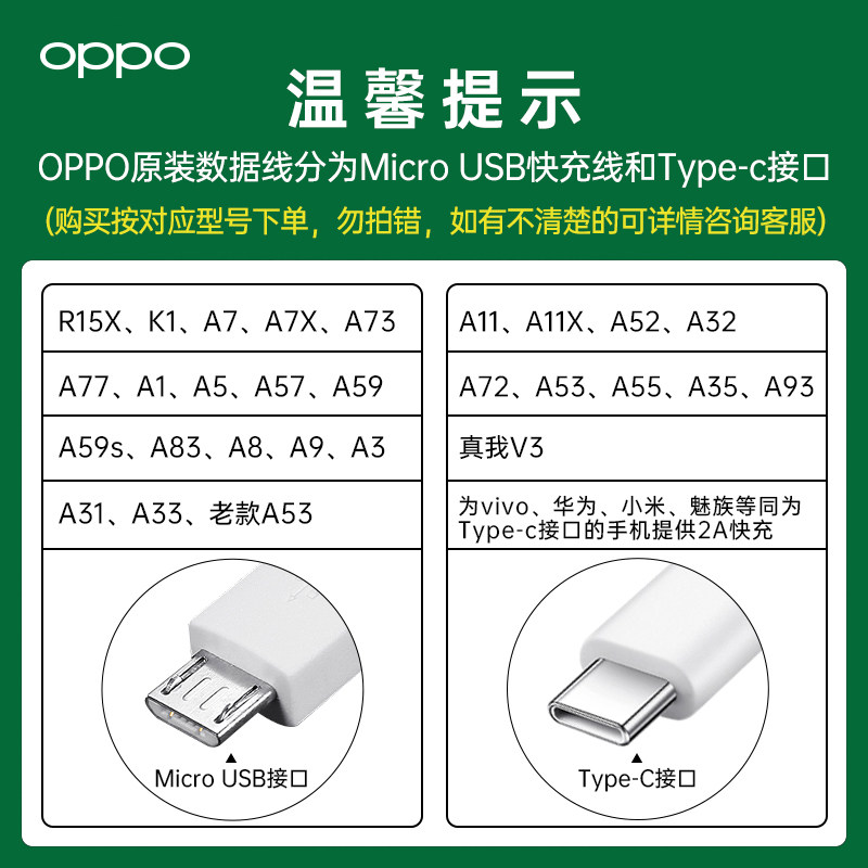 | Color Classification | [Original and Authentic] 2A Data Cable,[Original and Authentic] 2A Data Cable & Two,ăR15XăOriginal Data Cable,[A7/A7X/A77/A73] Original Data Cable,ăA59/A59S/A5/A57ăOriginal Data Cable,[A37/A31/A3/A33/A35] Original Data Cable,[A1/K1/A8/A9/A83] Original Data Cable,ăA11/A11XăOriginal Data Cable Type-C,ă2A Universal KităOriginal Data Cable + Original Data Cable,ăA52/A72/A92S/A32/A93/A93SăOriginal Data Cable Type-C,ăA53/A55ăOriginal Data Cable Type-C,ăA53/A55/A35ăOriginal Charger + Original Data Cable Type-C,ăA11/A11XăOriginal Charger + Original Data Cable Type-C,[18W Set] Original Charger + Original Data Cable Type-C,ăA92SăOriginal Charger + Original Data Cable,ăA52/A72ăOriginal Charger + Original Data Cable,ăA32ăOriginal Charger + Original Data Cable,ăA93/A93SăOriginal Charger + Original Data Cable |