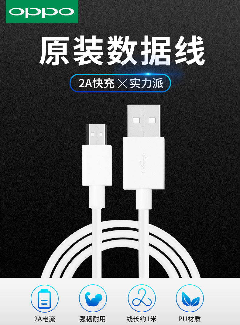 Oppo Original Data Cable Oppoa7X A57 A1 A3 A73 A5 A59 A9 R15X Charging Cable Mobile Phone Original Fast Charging K1 A77 A37 A7 Android Universal USB Charger Cable