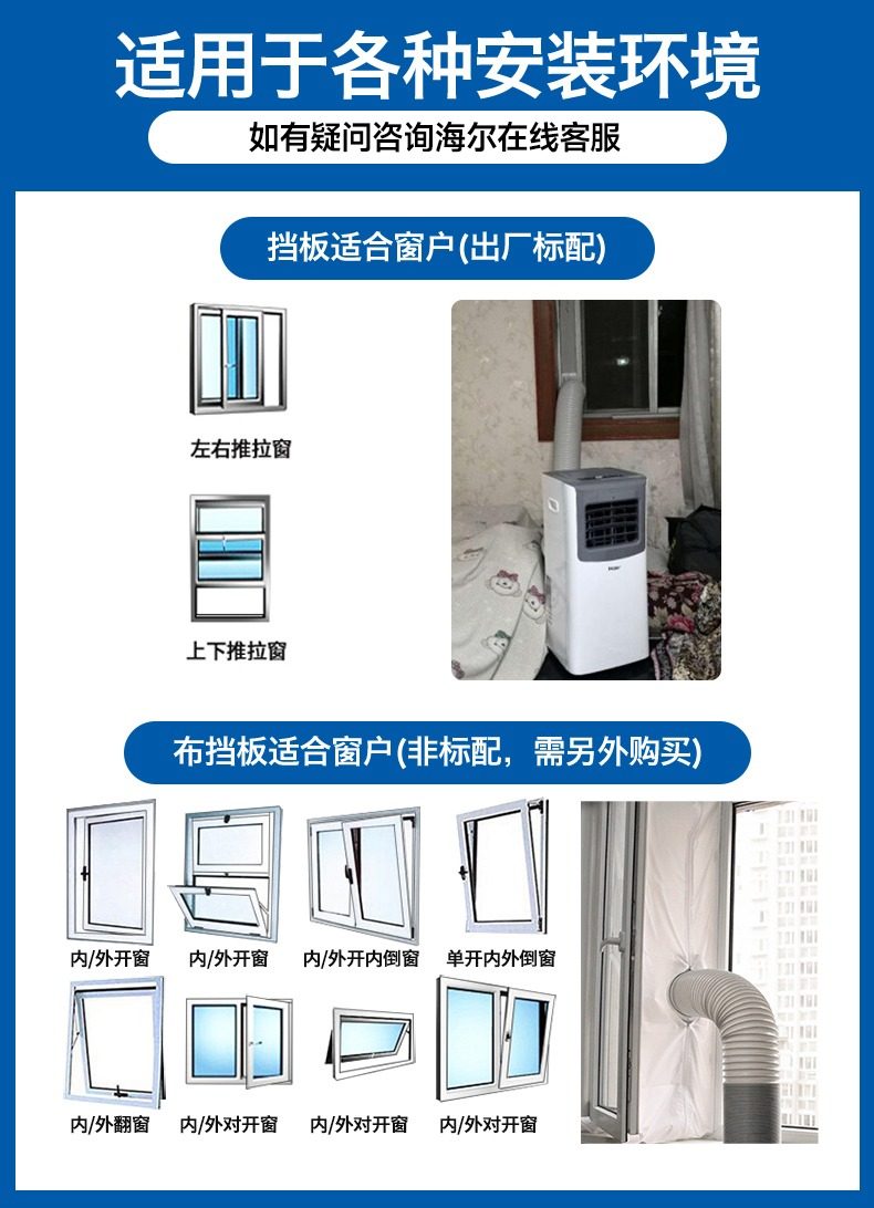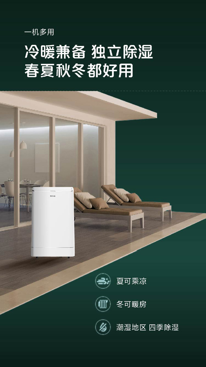 Haier Portable Air Conditioner, Dual-Use for Cooling and Heating, Single Cooling All-In-One Unit, 1.5P for Large Areas, No External Unit, 2P