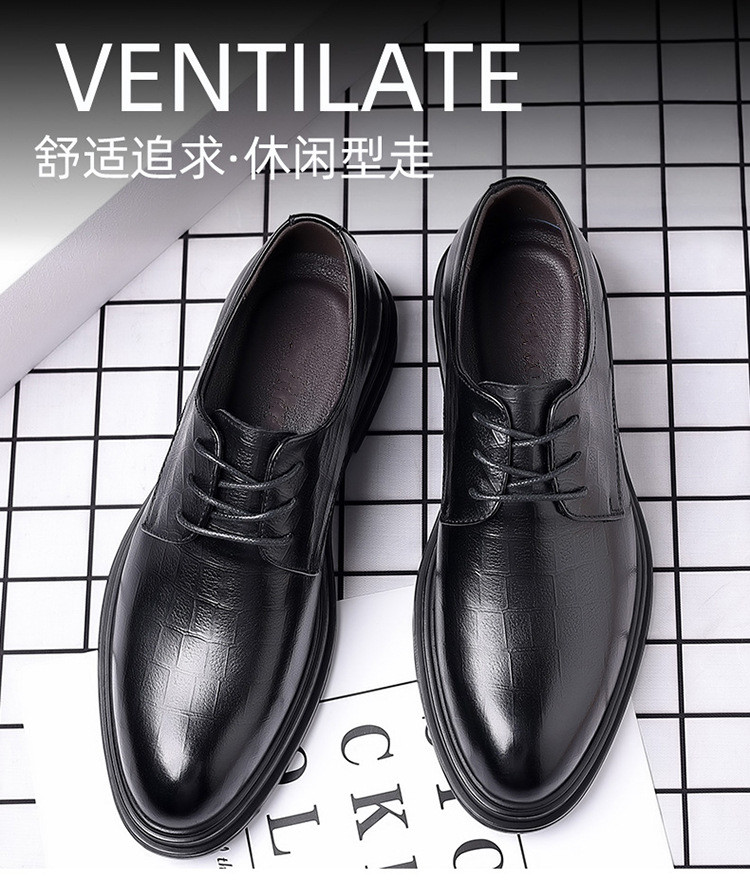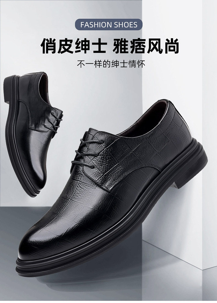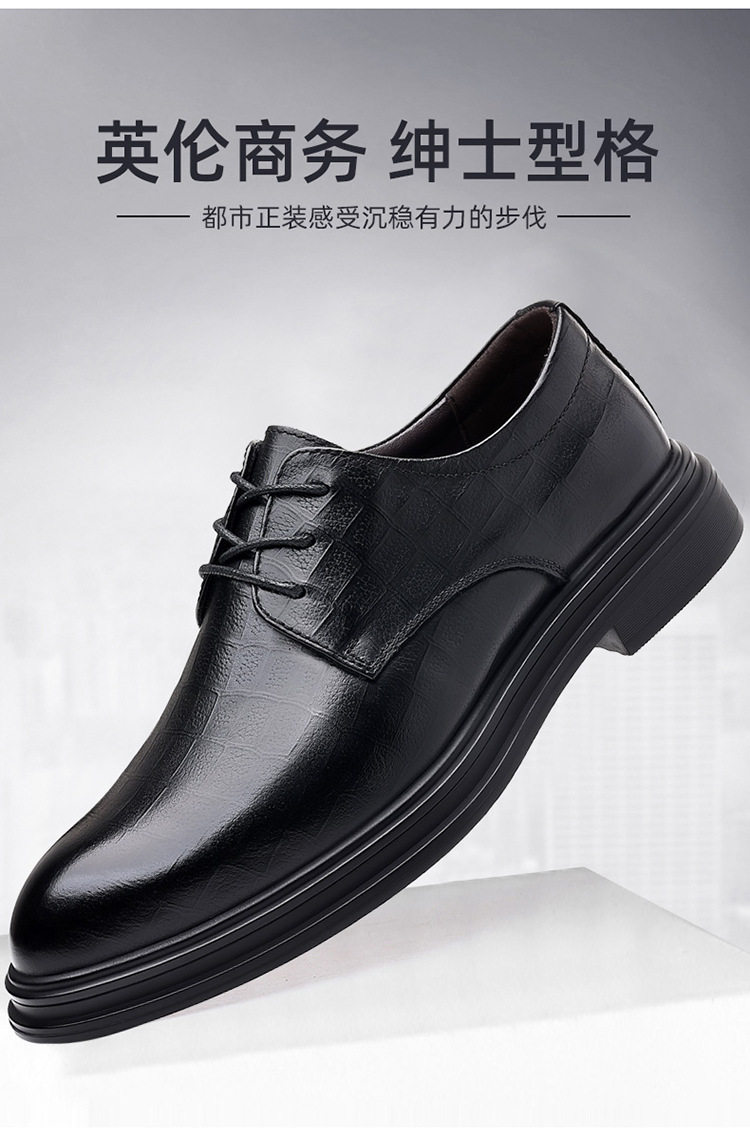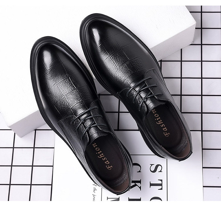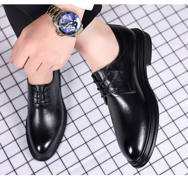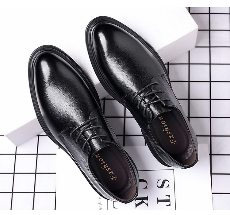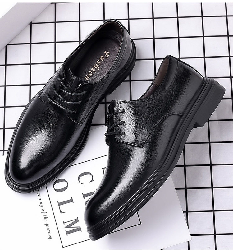 Autumn Derby Leather Shoes for Men, Genuine Leather, Soft Sole, Business Formal Wear, Casual Thick Sole, Height-Increasing, British Style, Black Groom Wedding Shoes