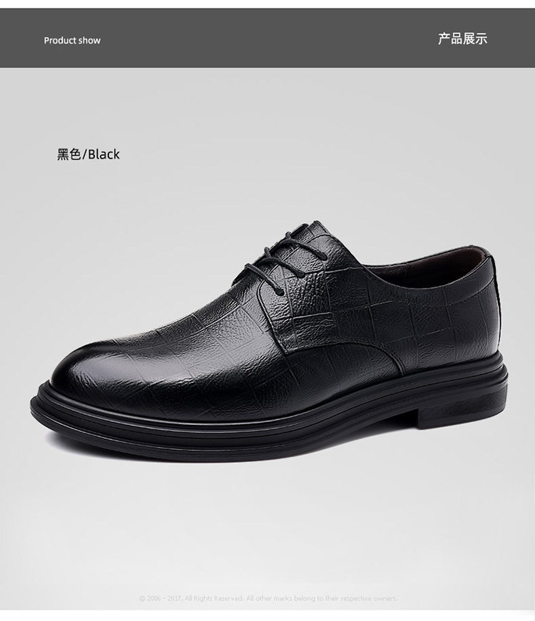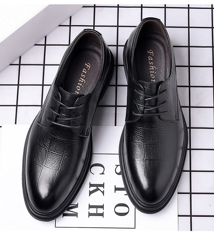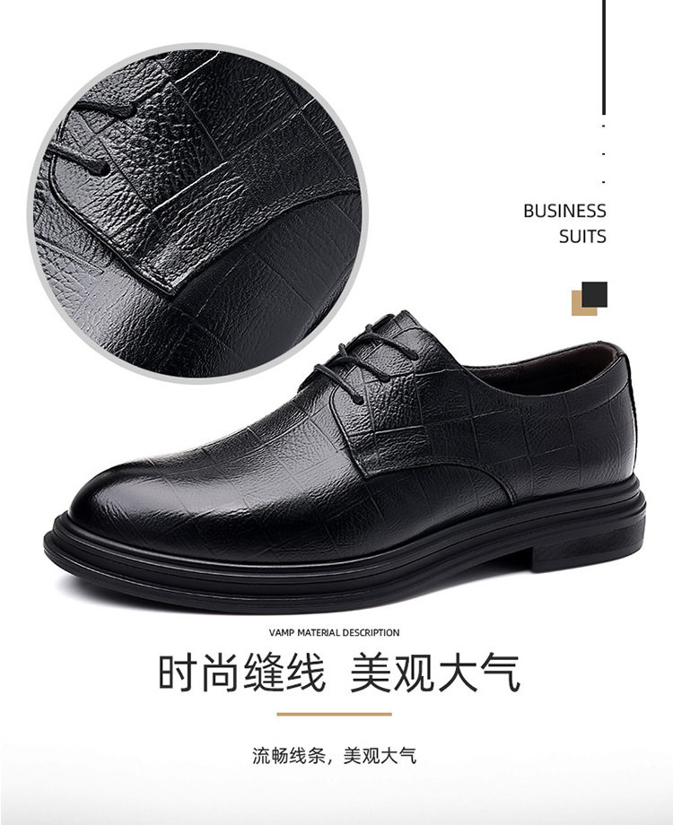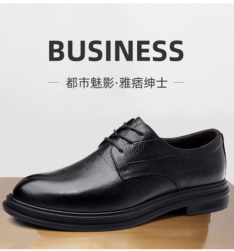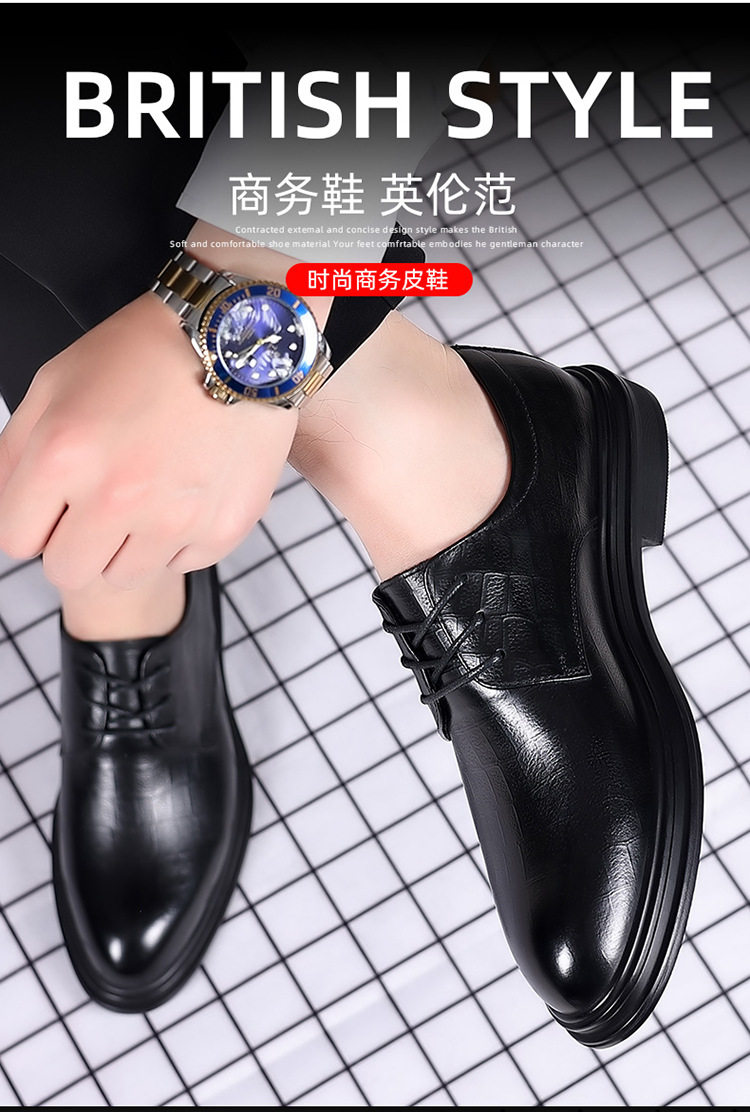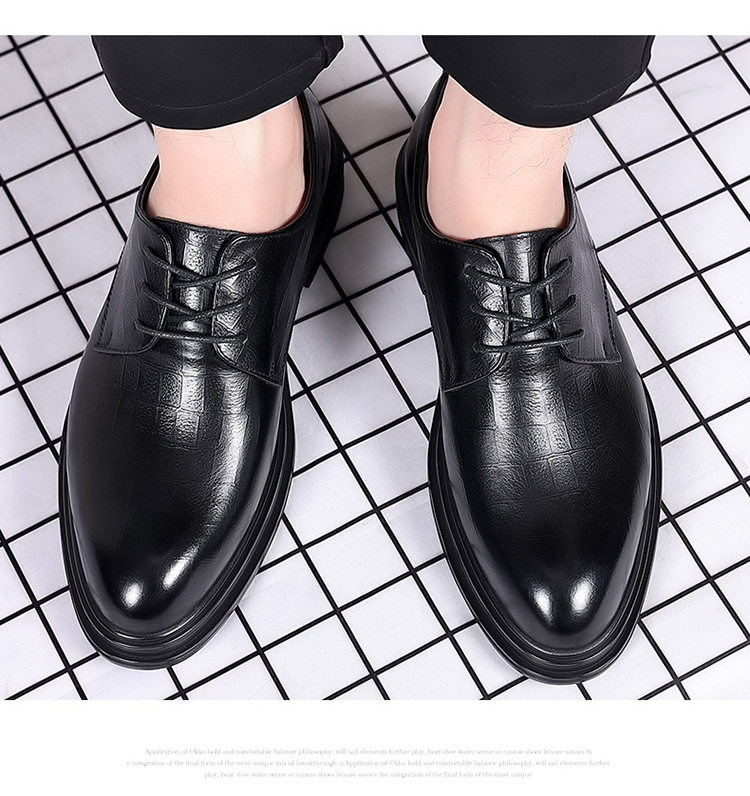 Autumn Derby Leather Shoes for Men, Genuine Leather, Soft Sole, Business Formal Wear, Casual Thick Sole, Height-Increasing, British Style, Black Groom Wedding Shoes