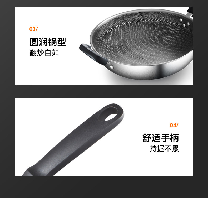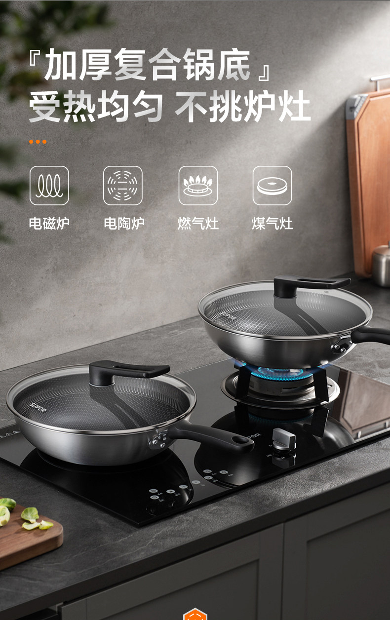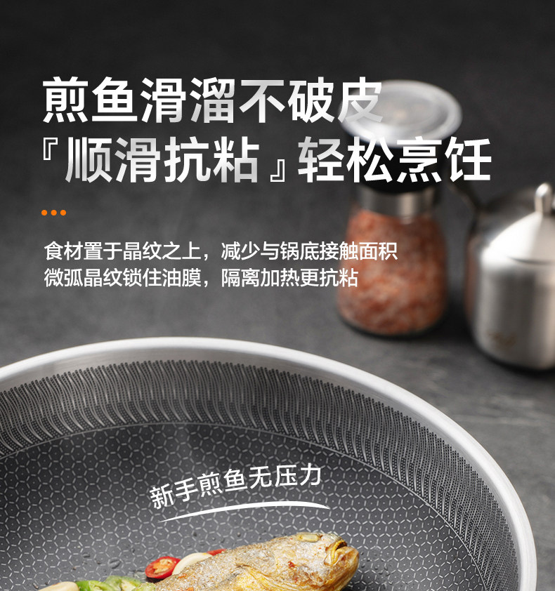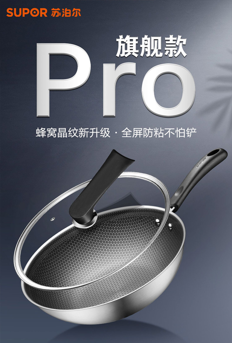 Supor Non-Stick Frying Pan for Home Use, 304 Stainless Steel Honeycomb Non-Stick Cooking Pan, Suitable for Induction Cookers and Gas Stoves