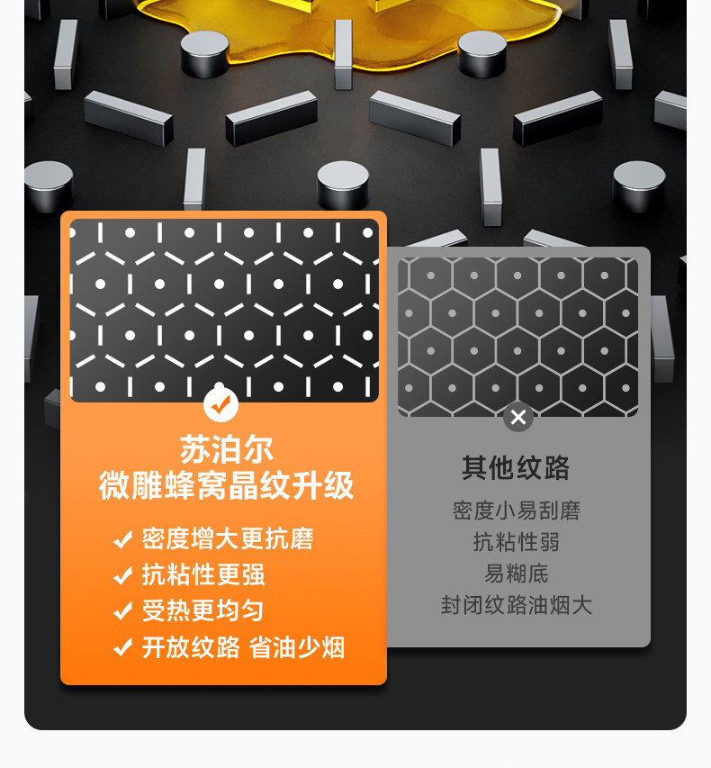 | Functional Features | Less Oily Smoke, Not Easy to Stick to the Pan,No Rust |