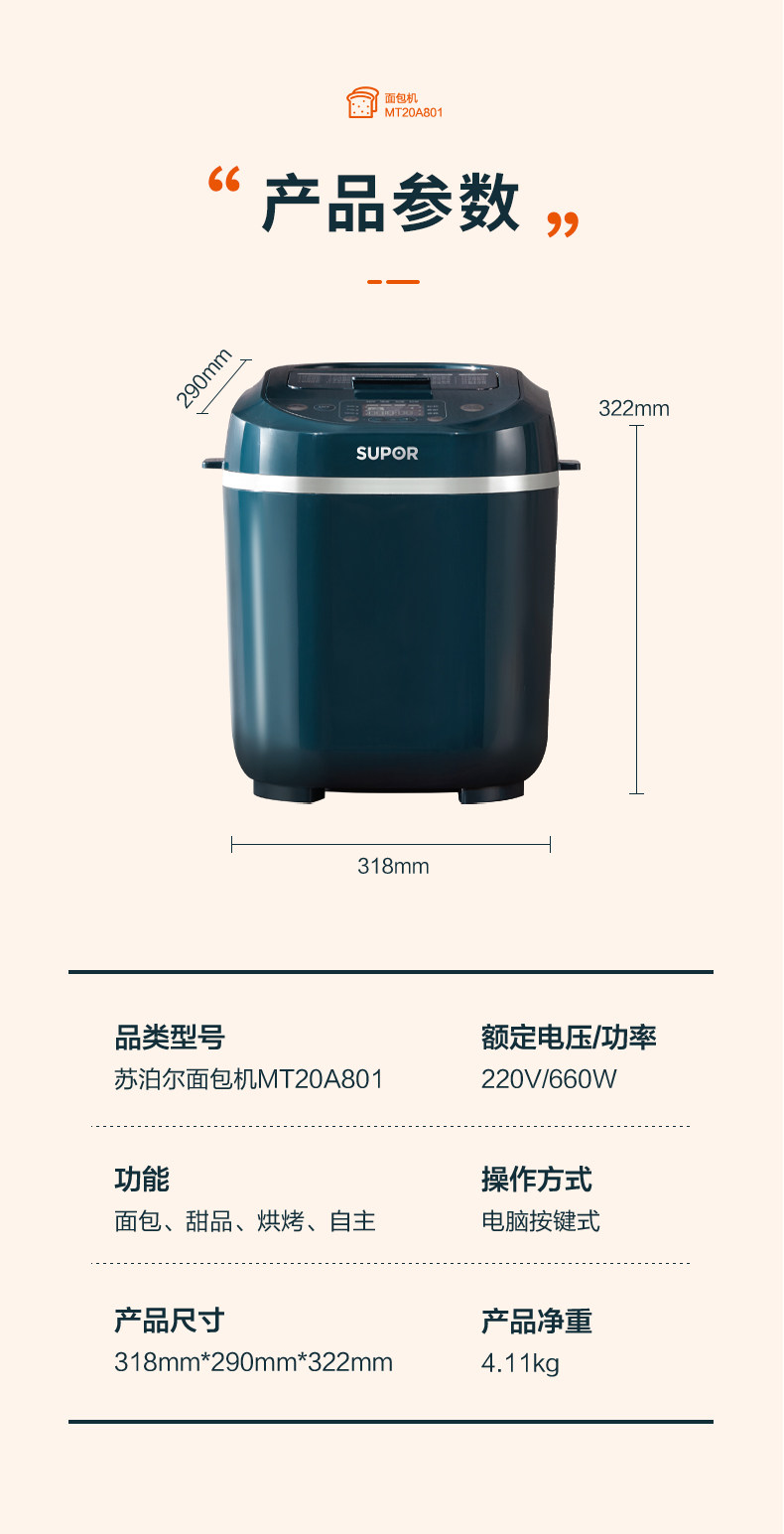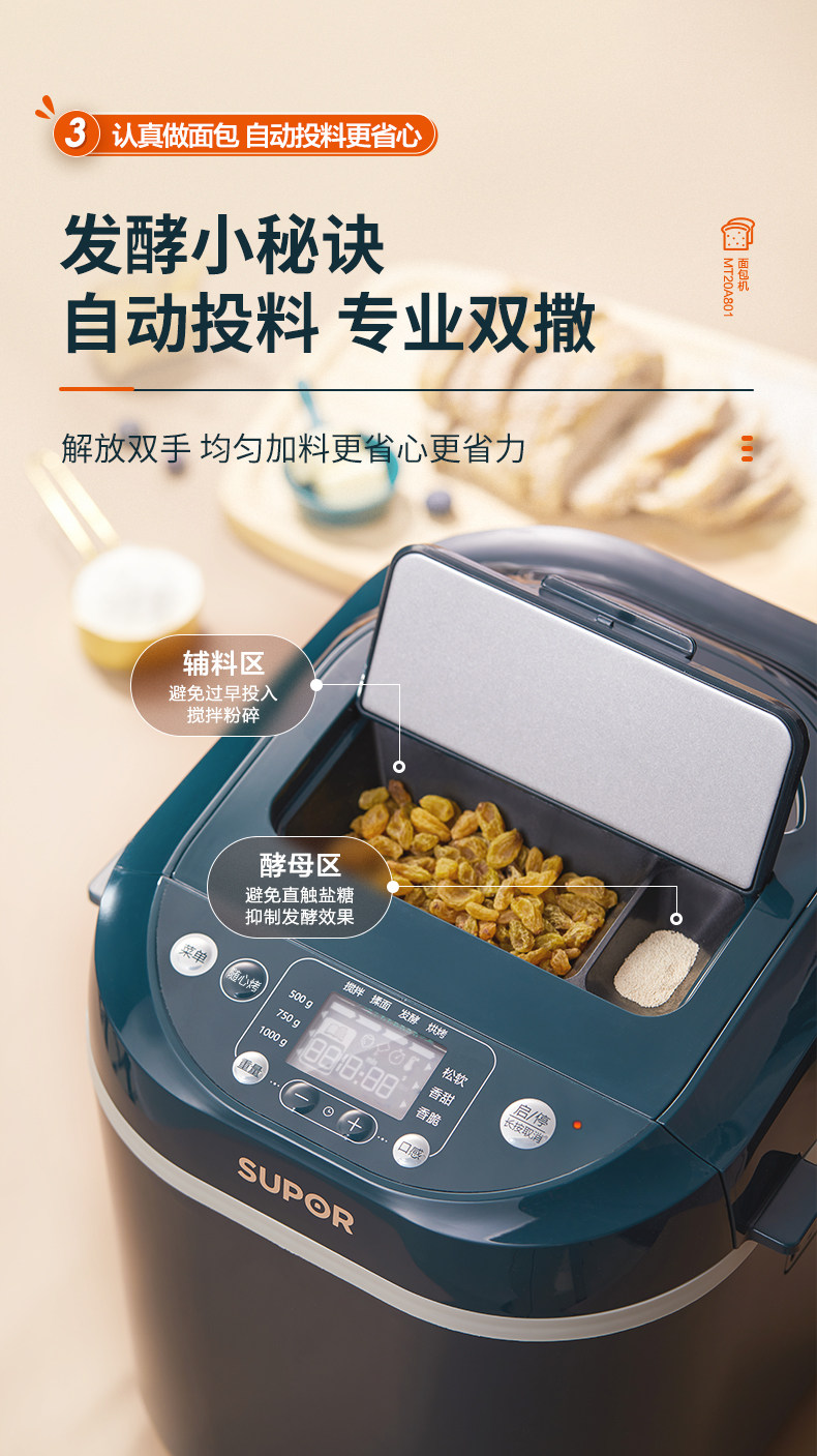 Supor Bread Maker for Home Use, Fully Automatic Dough Kneading and Fermentation Machine for Steamed Buns, Cake Maker, Mixer, Chef Machine