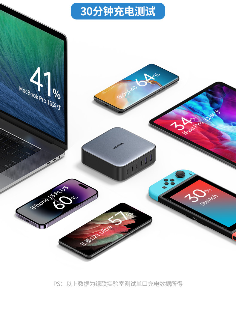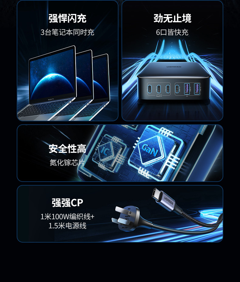 [National 3C Certification] Ugreen 200W Gan Charger Pd Fast Charging Adapter Compatible with Apple Huawei iPhone Mobile Phones, Laptops, Tablets Multi-Port Fast Charging Plug Desktop Charging Station