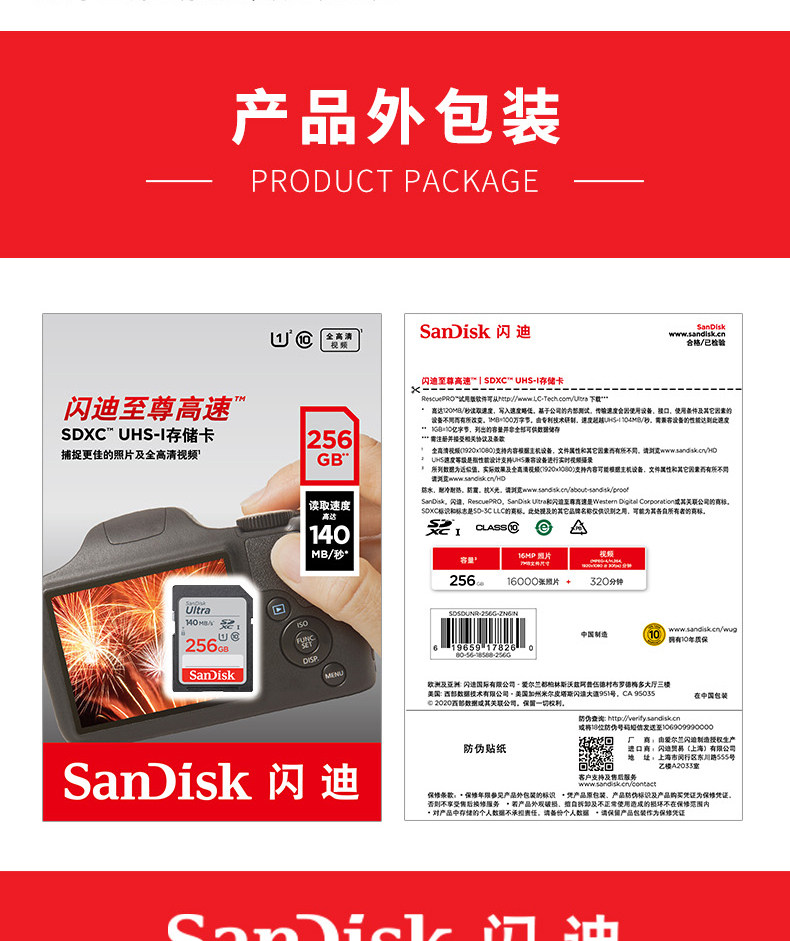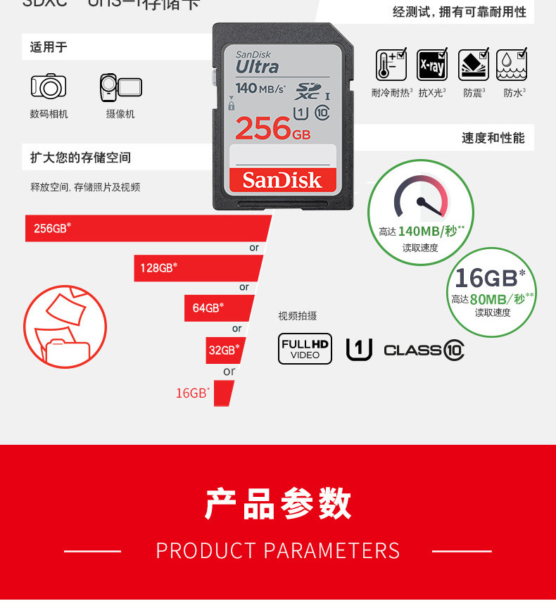 Sandisk Sd Card 256g High-Speed Camera Camcorder 128g Canon Nikon Sony Panasonic 64g Memory Card Large 32g