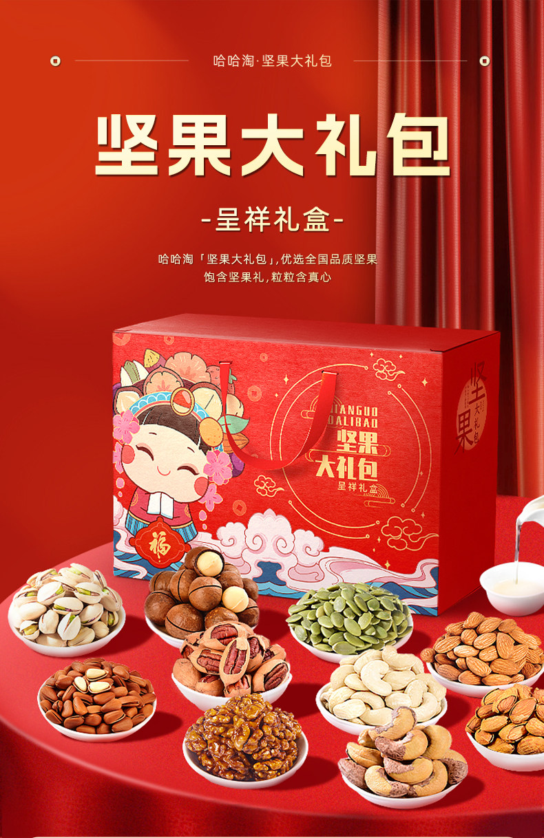 Hahatao High-End New Year Nut Gift Box Food for New Year Gifts, Visiting Relatives, Giving to Elders, New Year Dried Fruit Gift Box