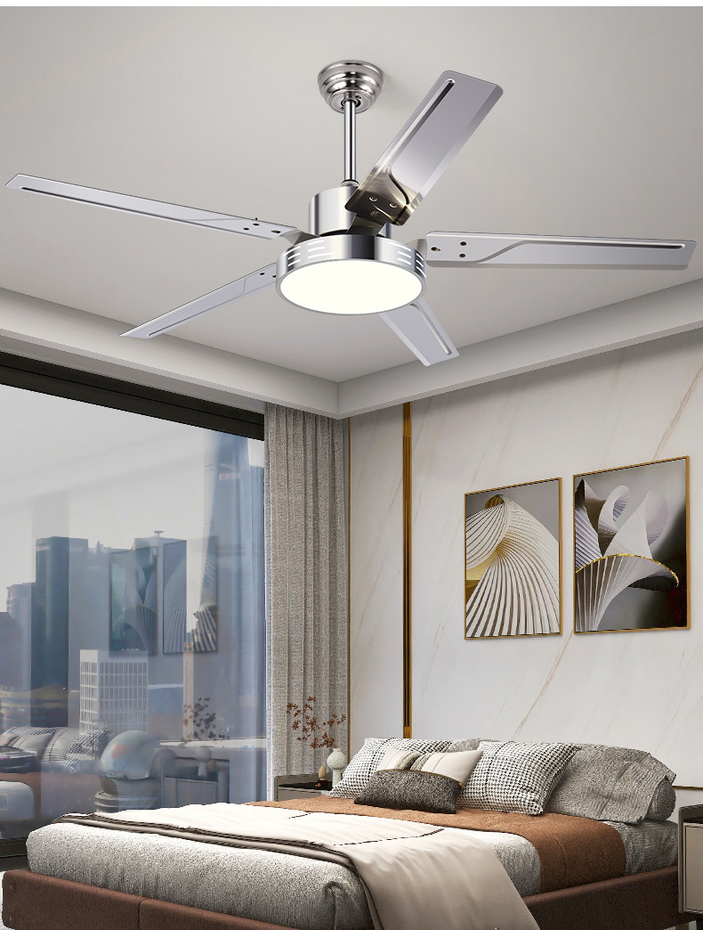 Chigo Stainless Steel Ceiling Fan Dining Room Fan Light Living Room Modern Minimalist Bedroom Led Variable Frequency Electric Fan Chandelier
