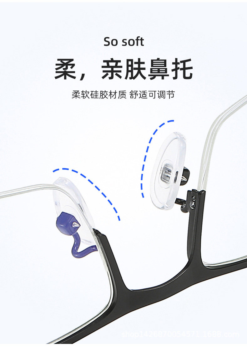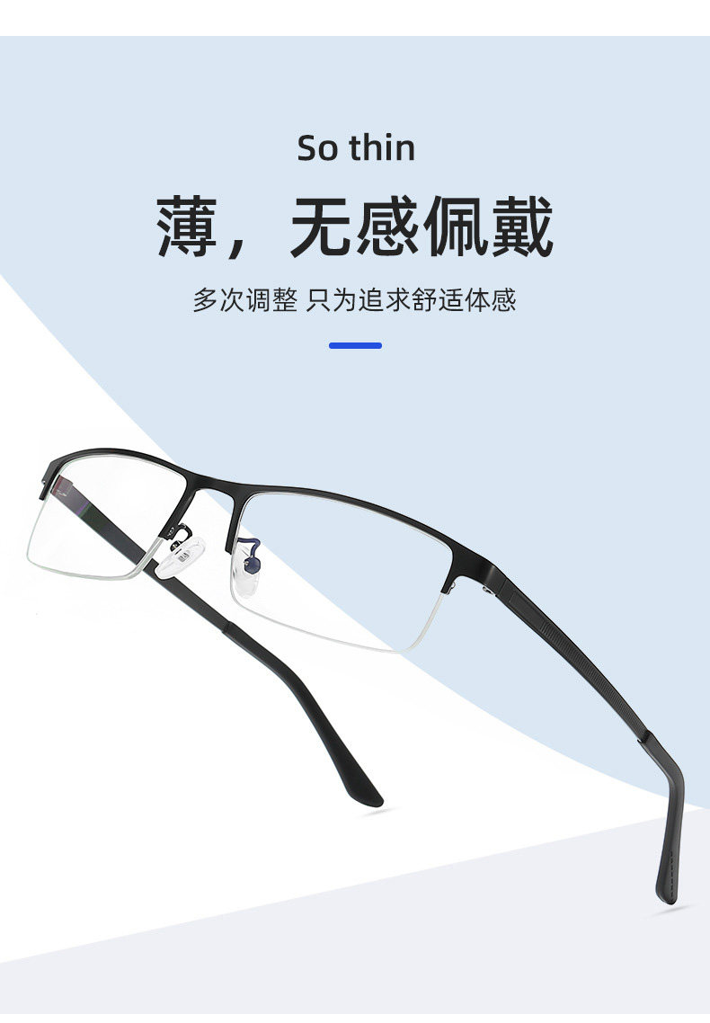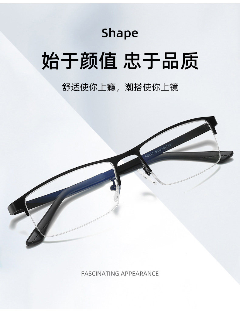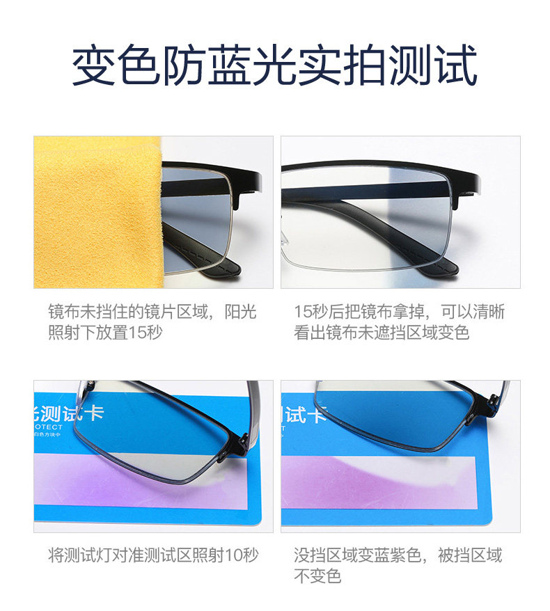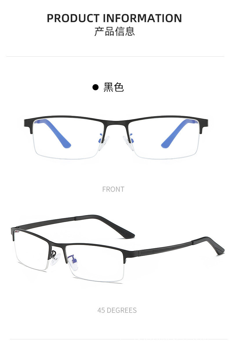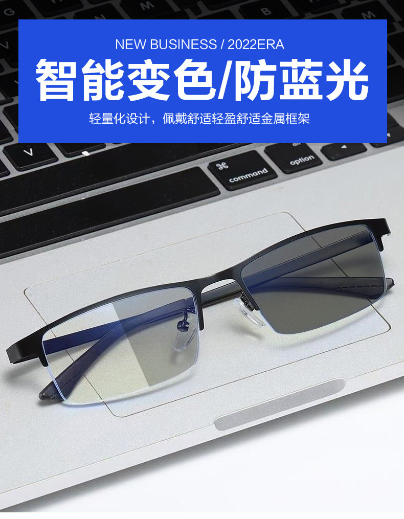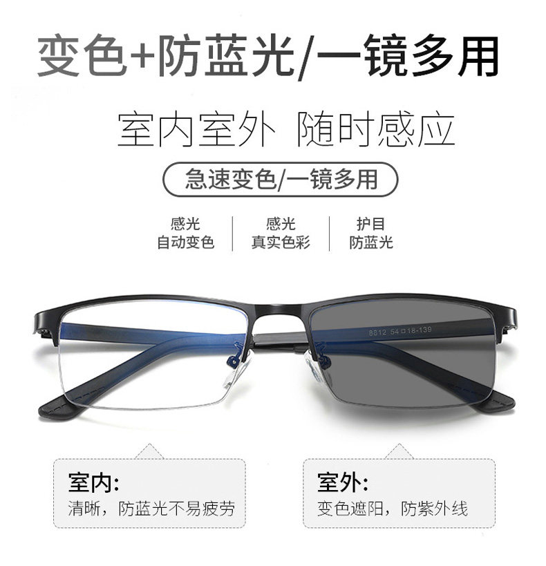 Anti-Blue Light Photochromic Glasses for Men and Women, Business Anti-Radiation Protective Eyewear, Half-Frame Non-Prescription Glasses, Non-Prescription Myopia Glasses Frame