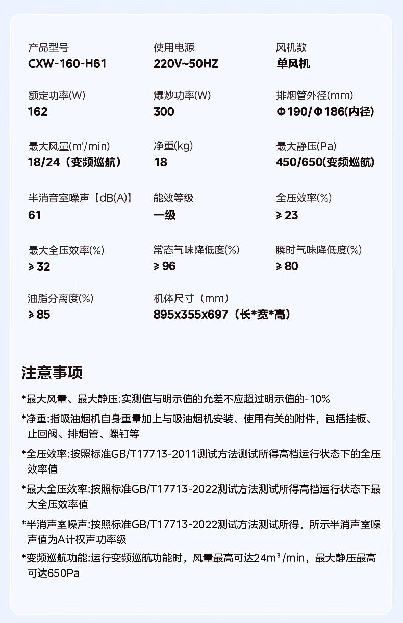 | Range Hood Exhaust Volume | 27 Cubic Meters/Minute |