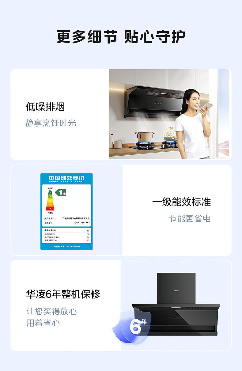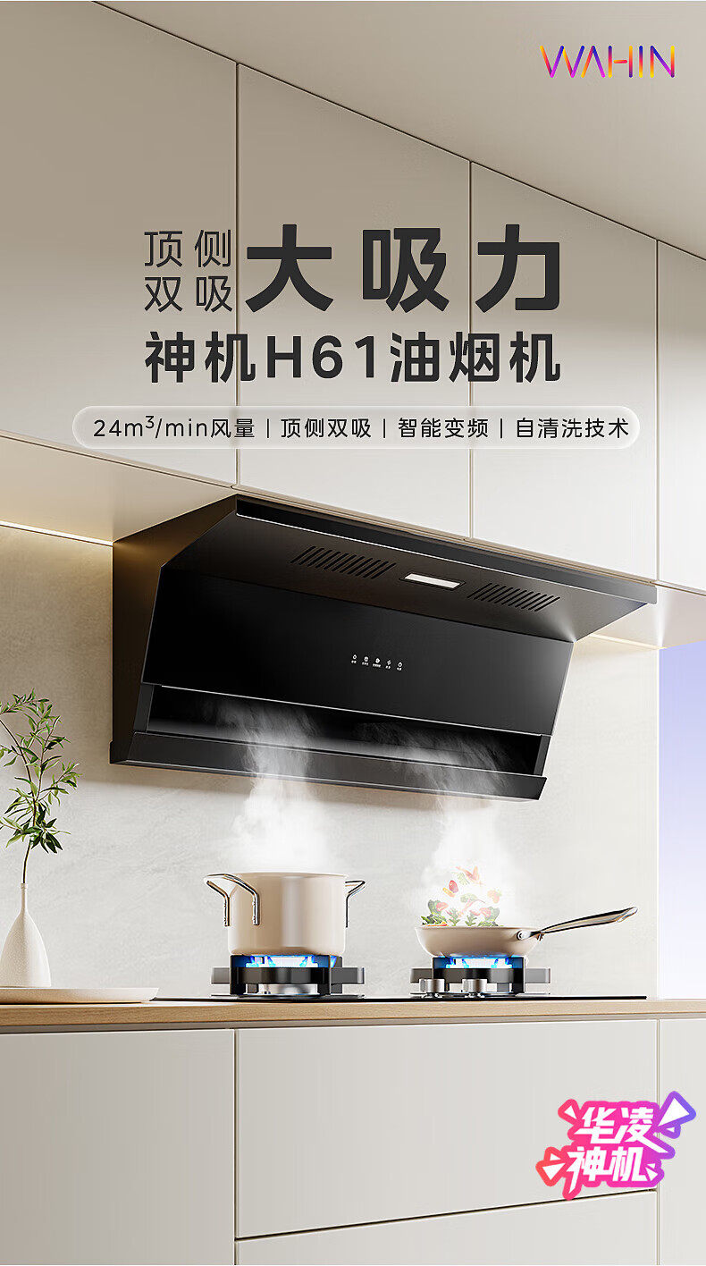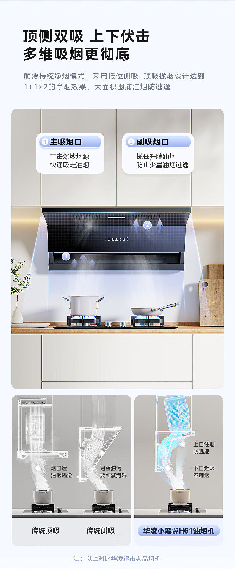Midea Hualing Top-Side Dual Suction Household Kitchen High-Suction Range Hood H71 Small Size