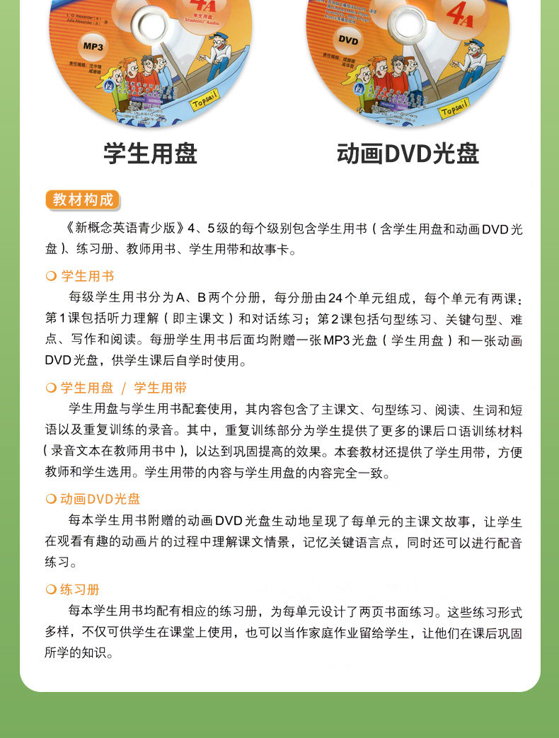 | Subject | New Concept English Youth Edition 4A Student Book [Applicable to the Second and Third Grade of Junior High School],New Concept English Youth Edition 4A Exercise Book [Applicable to the Second and Third Grade of Junior High School],New Concept English Youth Edition 4A Student Book + Workbook [Applicable to Grades 2 and 3] |