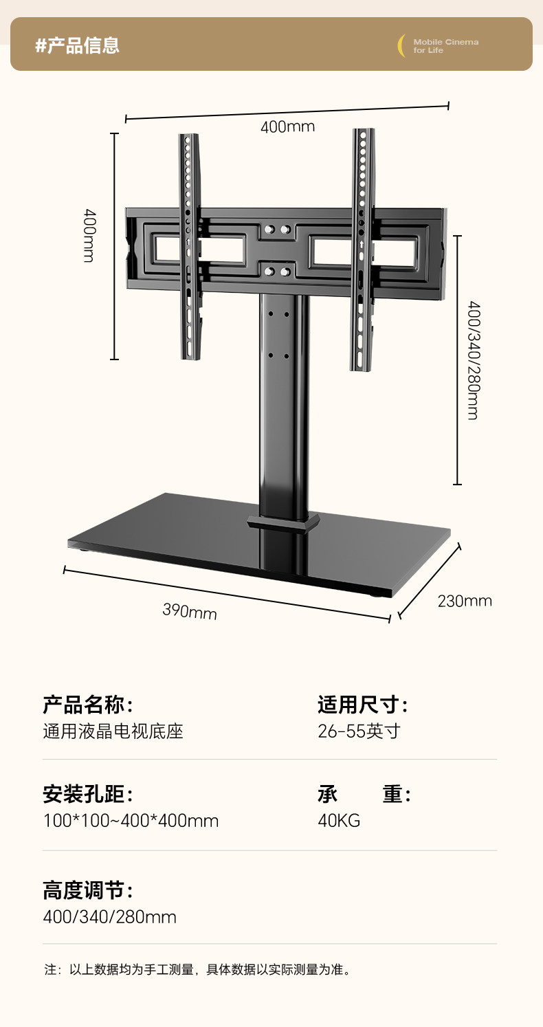 | Color Classification | [Authenticity Guaranteed],[2025 New Model] 26-55inch / Load Capacity 40kg / Glass Base,[2025 New Model] 26-55inch / Load Capacity 40kg / Walnut Base,[2025 New Model] 32-70inch / Load Capacity 65kg / Glass Base,[2025 New Model] 32-70inch / Load Capacity 65kg / Walnut Base,[2025 New Model] 26-55inch /Glass Base/Can Be Rotated Left and Right,[2025 New Model] 26-55inch /Walnut Base/Can Be Rotated Left and Right,[2025 New Model] 32-70inch /Glass Base/Can Be Rotated Left and Right,[2025 New Model] 32-70inch /Walnut Base/Can Be Rotated Left and Right |