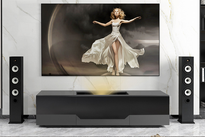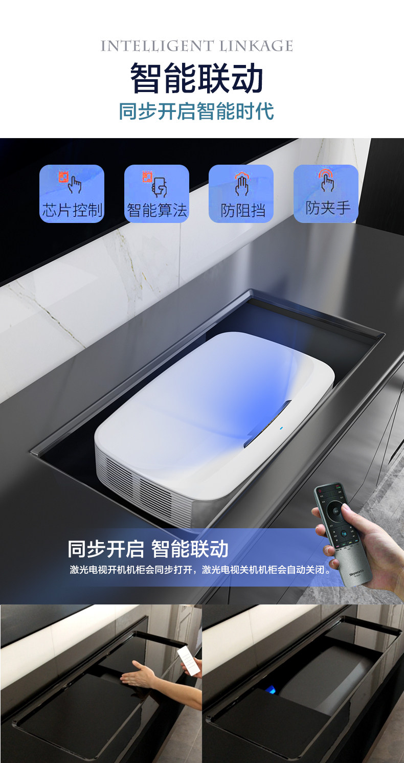 Denmeike Laser Projector Special Tv Cabinet Smart Electric Telescopic Table Synchronous Opening and Closing Tv Cabinet