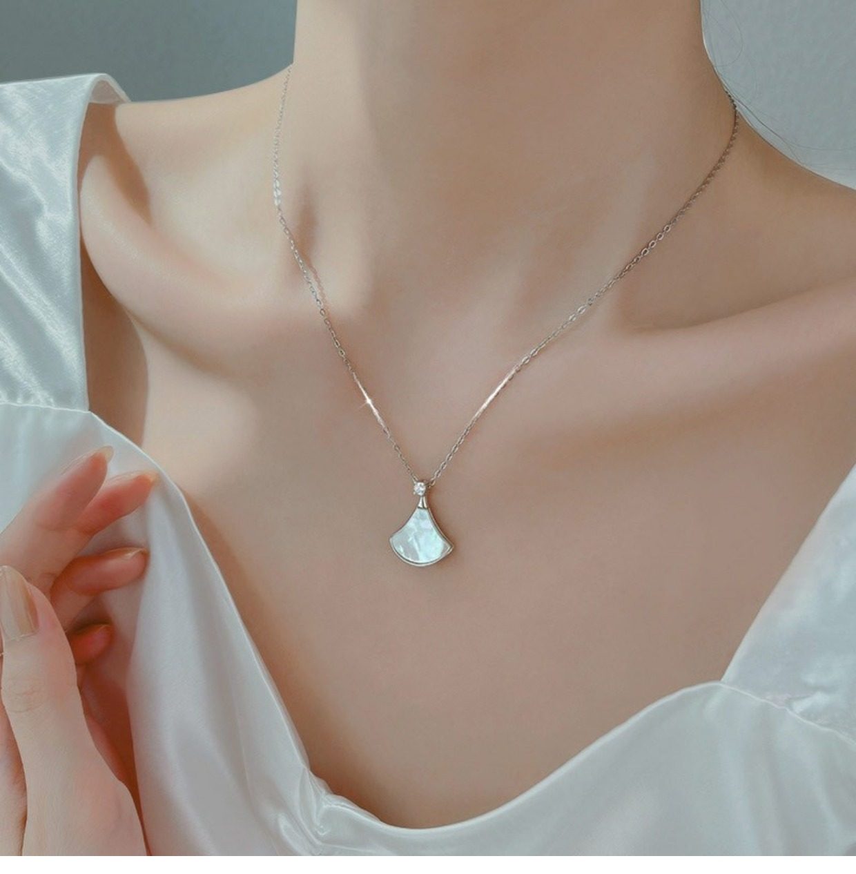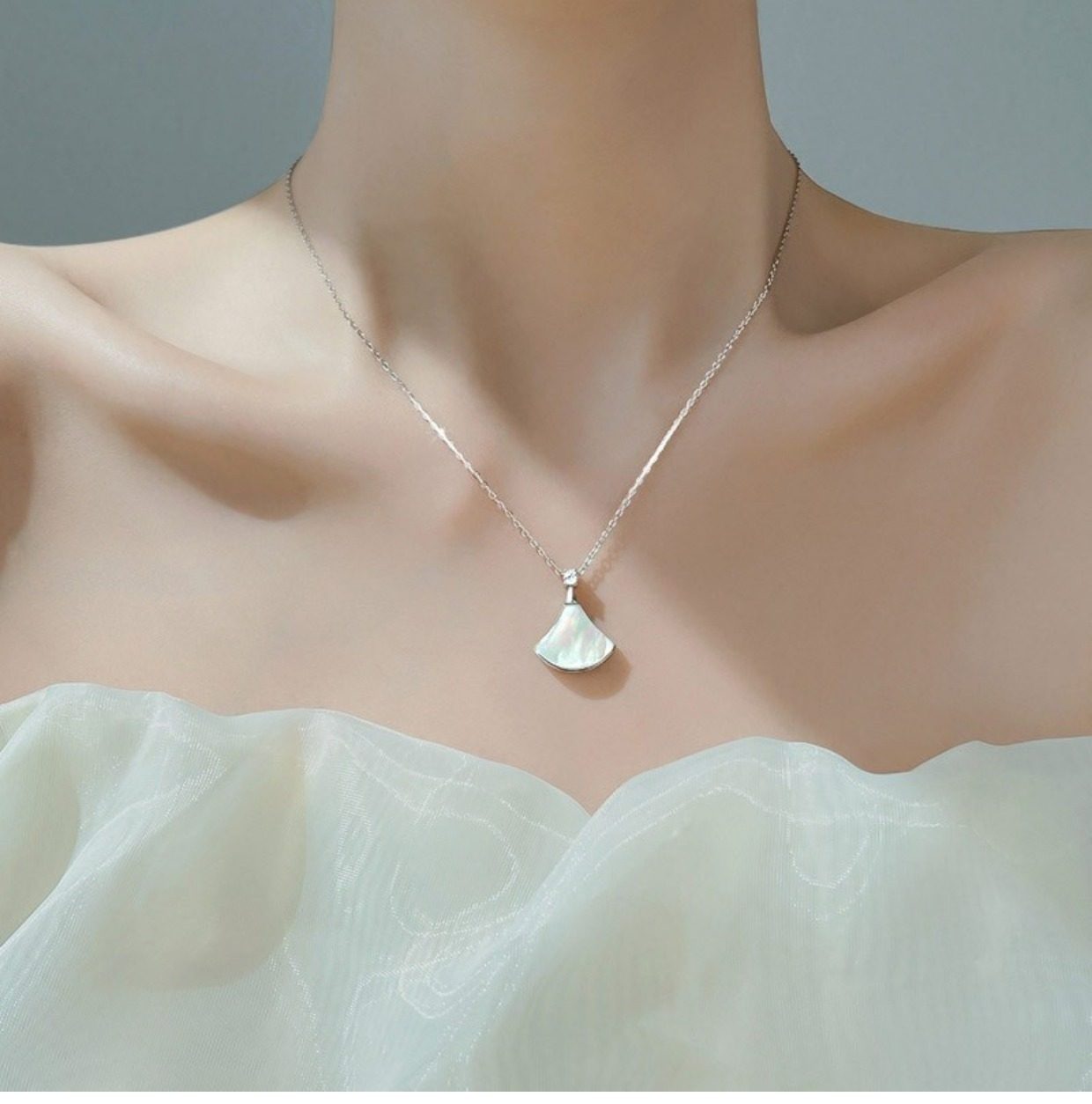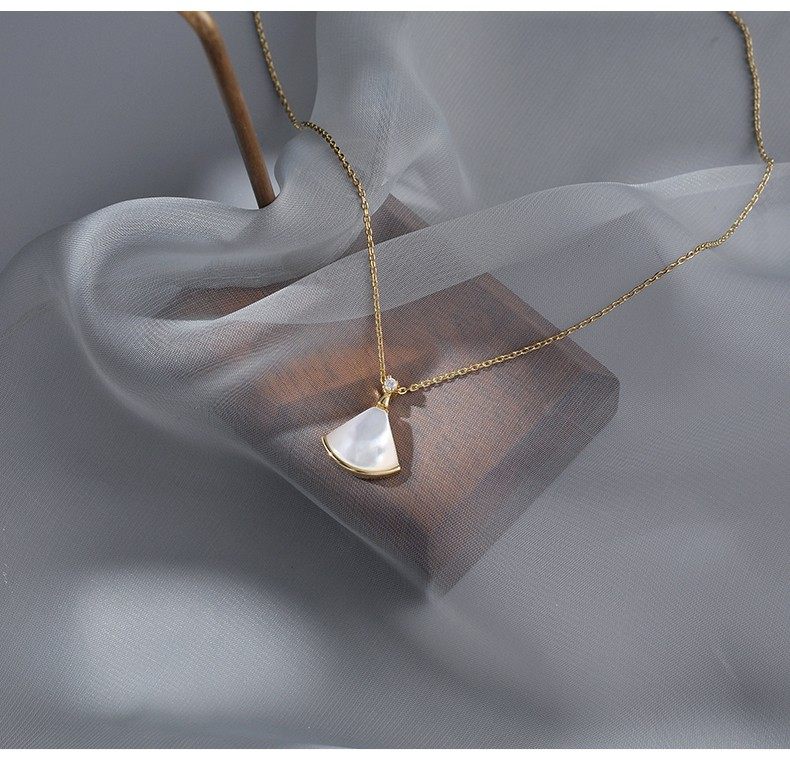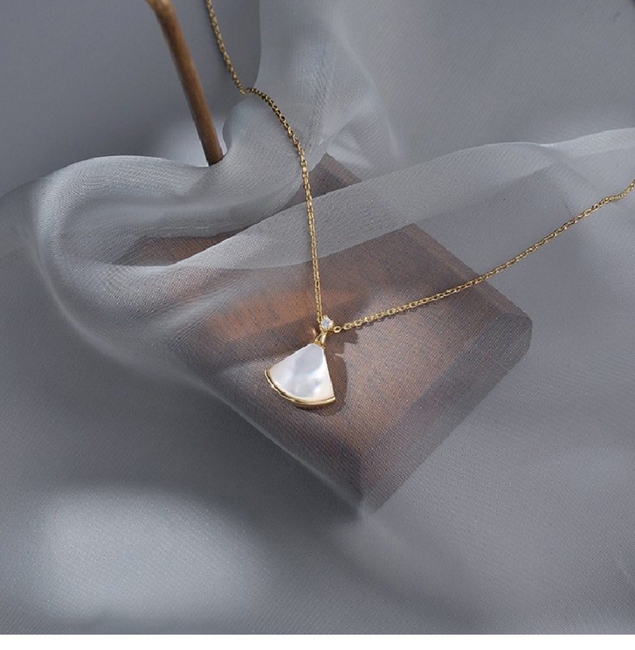 Small Fan-Shaped Imitation White Mother-Of-Pearl Necklace for Women, Light Luxury Niche Design Clavicle Chain, 2025 New Pendant