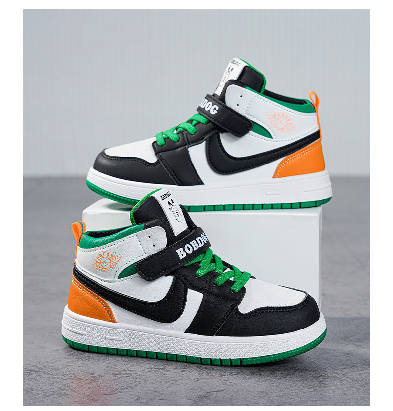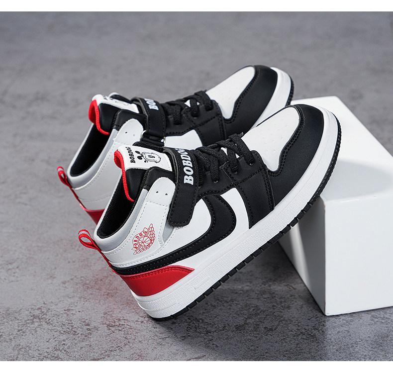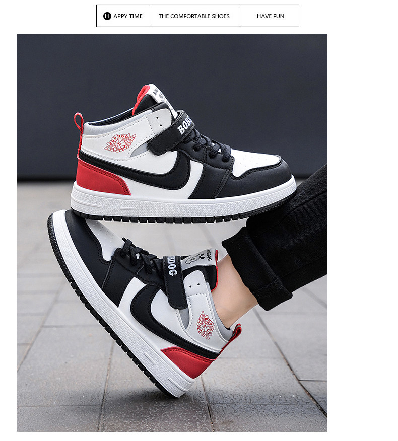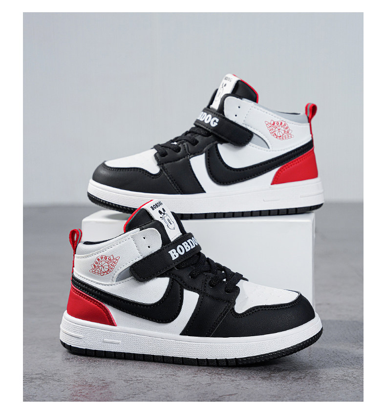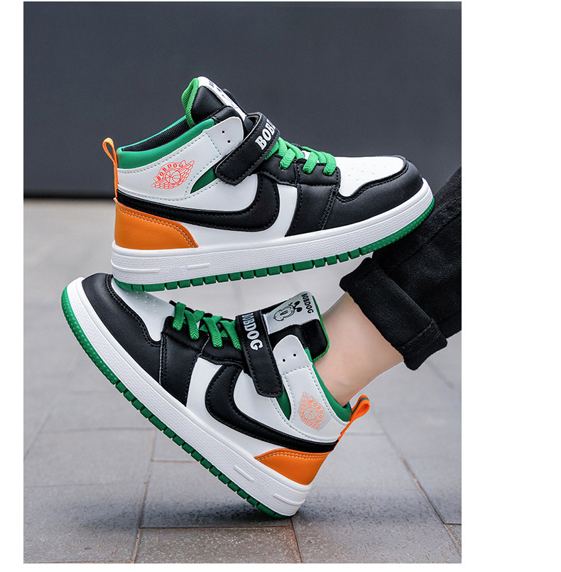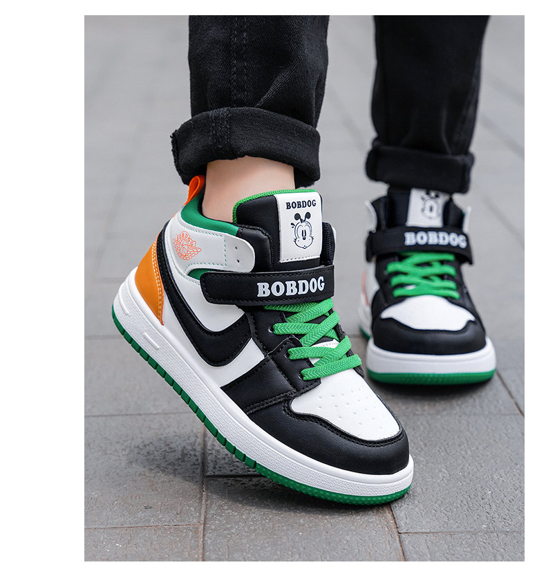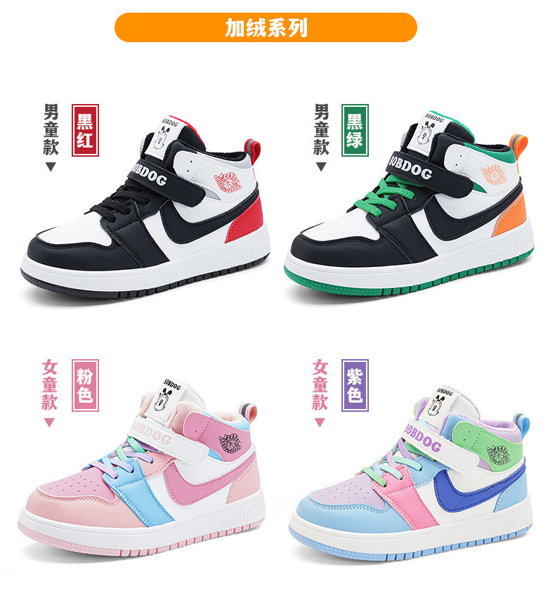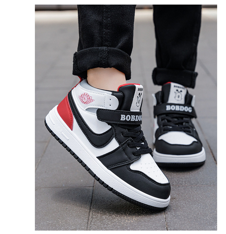 Babudou Boys' Shoes, New Autumn and Winter Models, Fleece-Lined, Warm, Double-Layered Leather High-Top Sneakers, Large Cotton Children's Sports Shoes