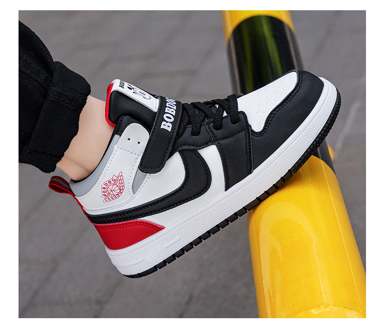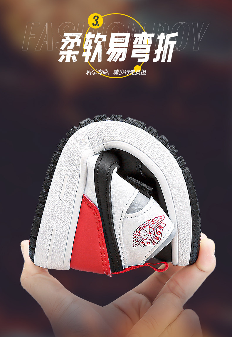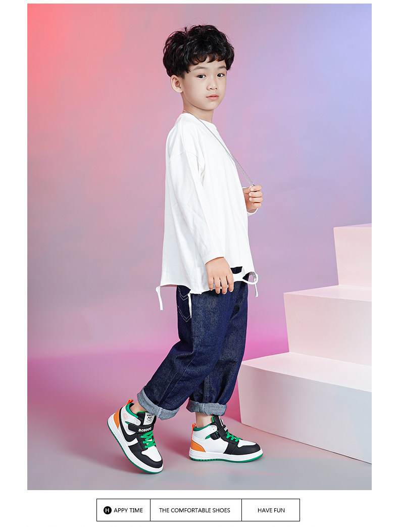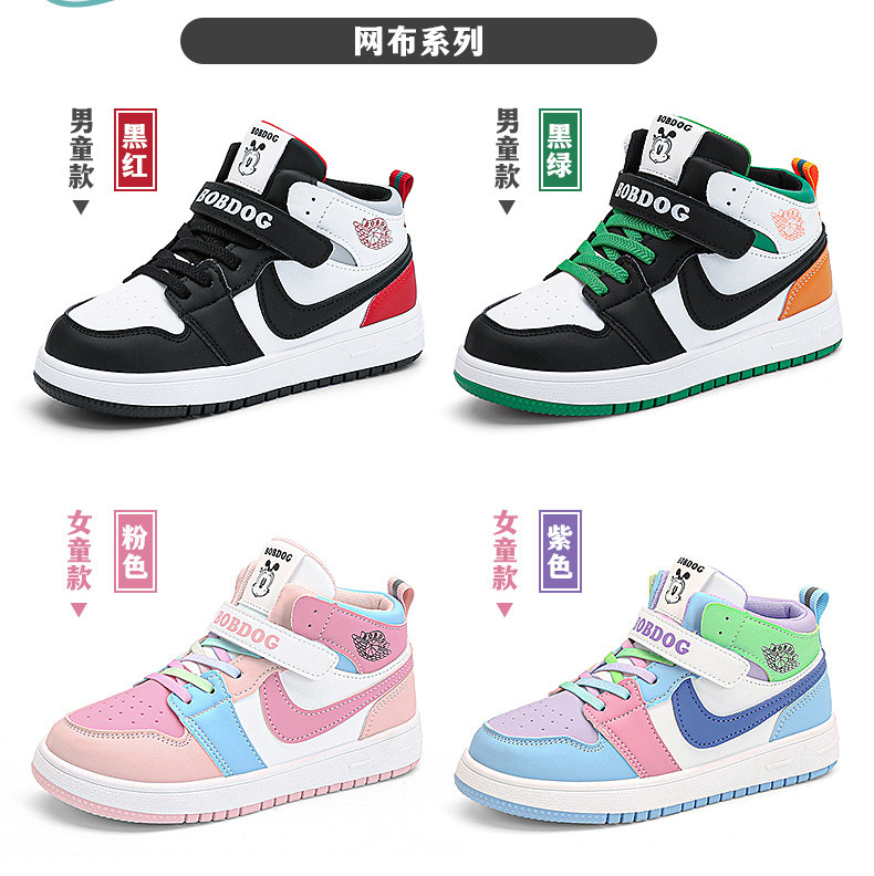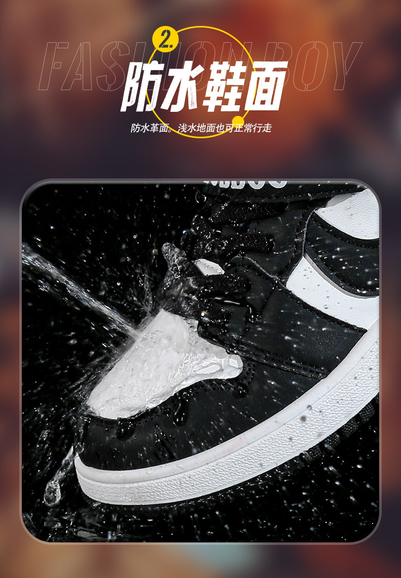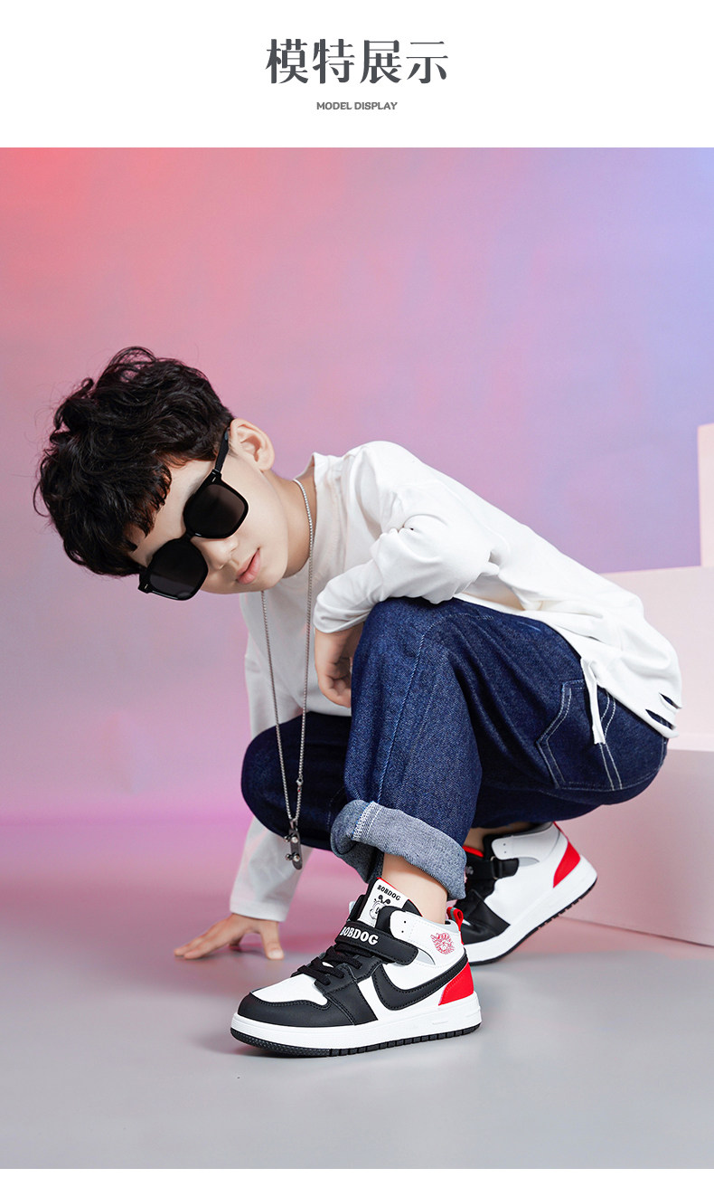 Babudou Boys' Shoes, New Autumn and Winter Models, Fleece-Lined, Warm, Double-Layered Leather High-Top Sneakers, Large Cotton Children's Sports Shoes