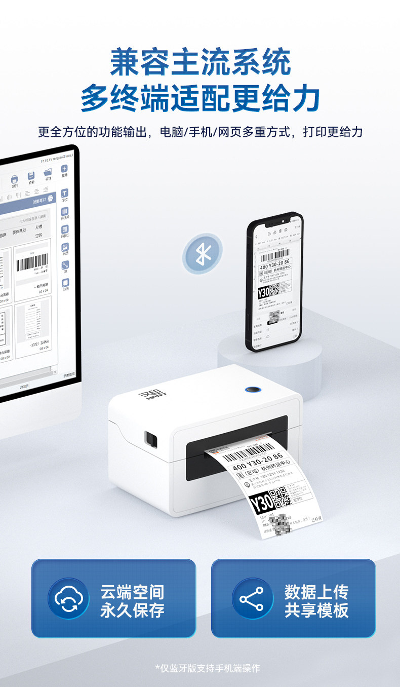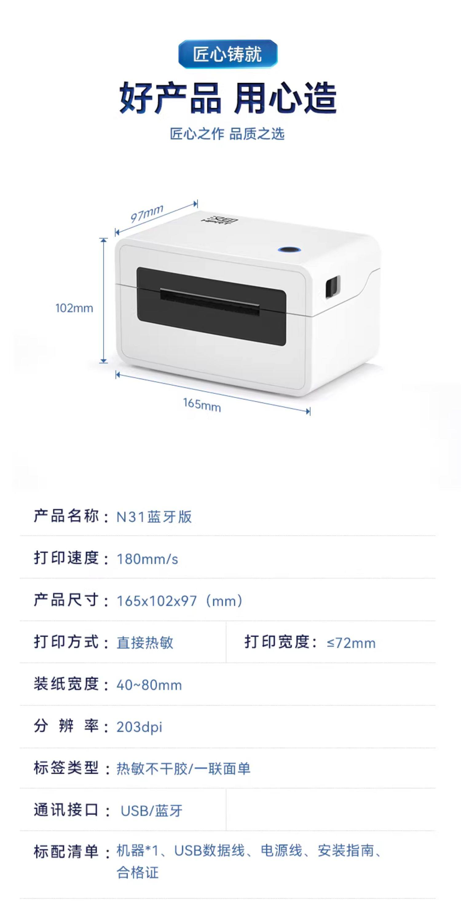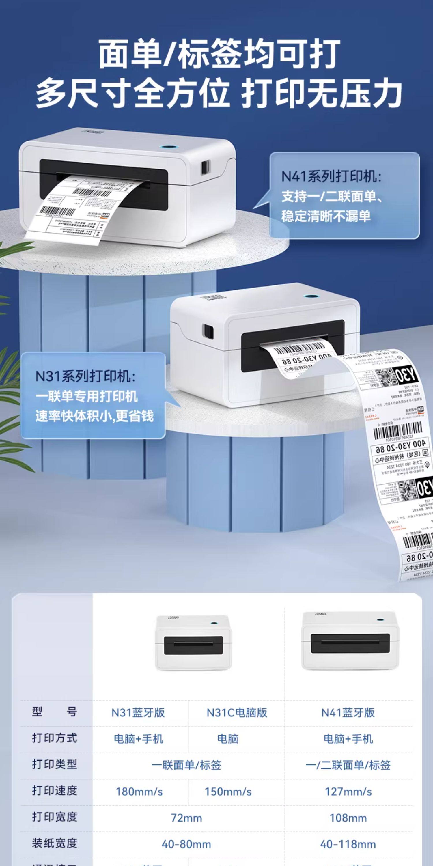 Bluetooth Express Order Printer, Hanyin Express Order Printer N31 Thermal Single-Sheet Electronic Receipt Printer, Small Barcode Self-Adhesive Label E-Commerce Order Smart Printing Machine, Compatible with Mobile Phones and Computers