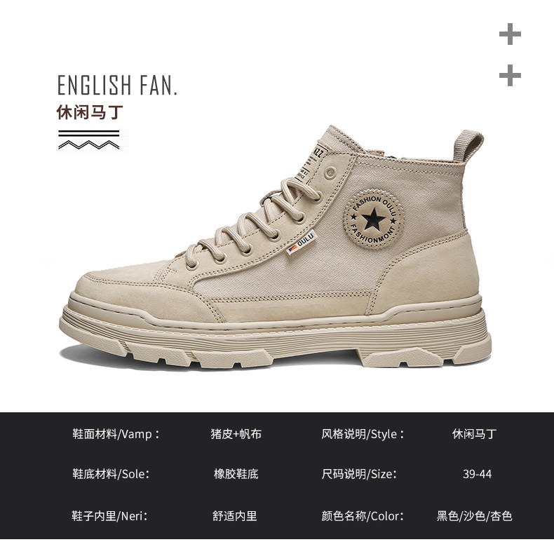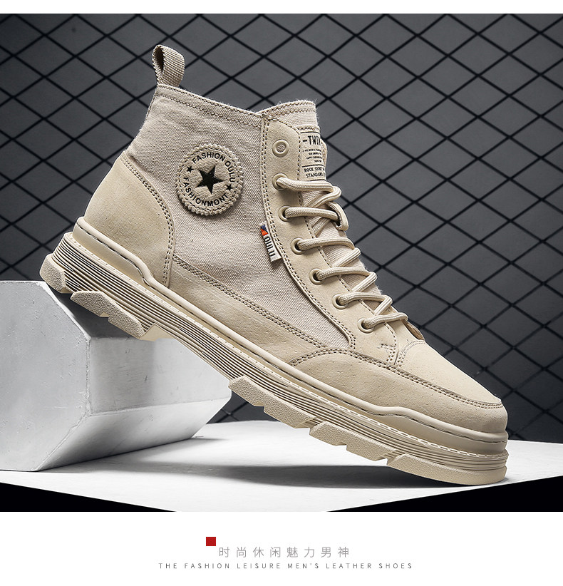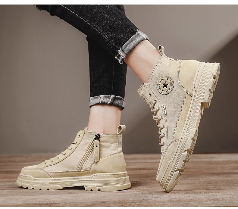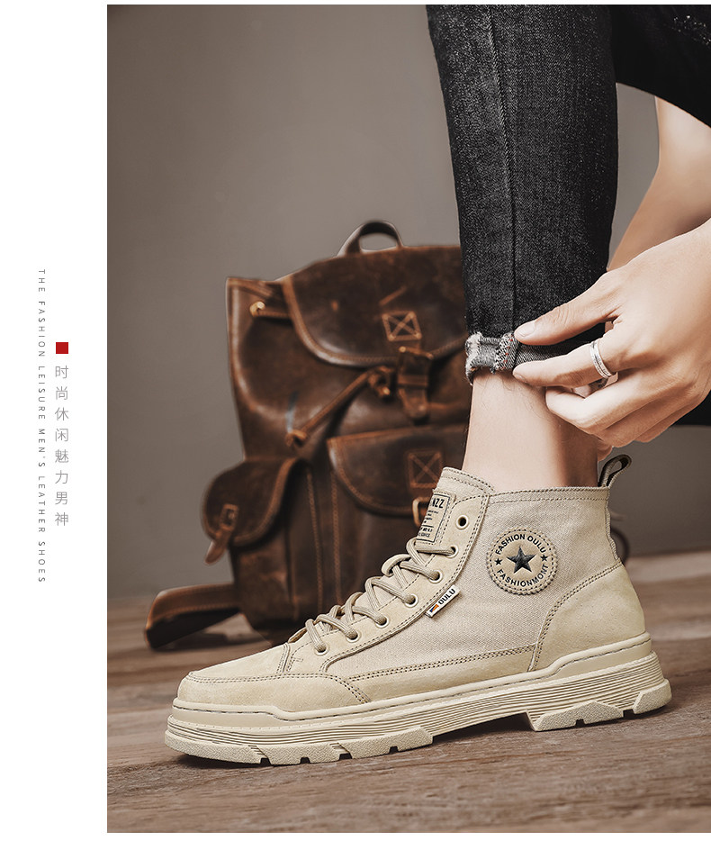 Autumn Breathable Men's Shoes, Martin Boots, Men's High-Top British Trendy Shoes, Desert Boots, Men's Boots, Canvas Short Boots