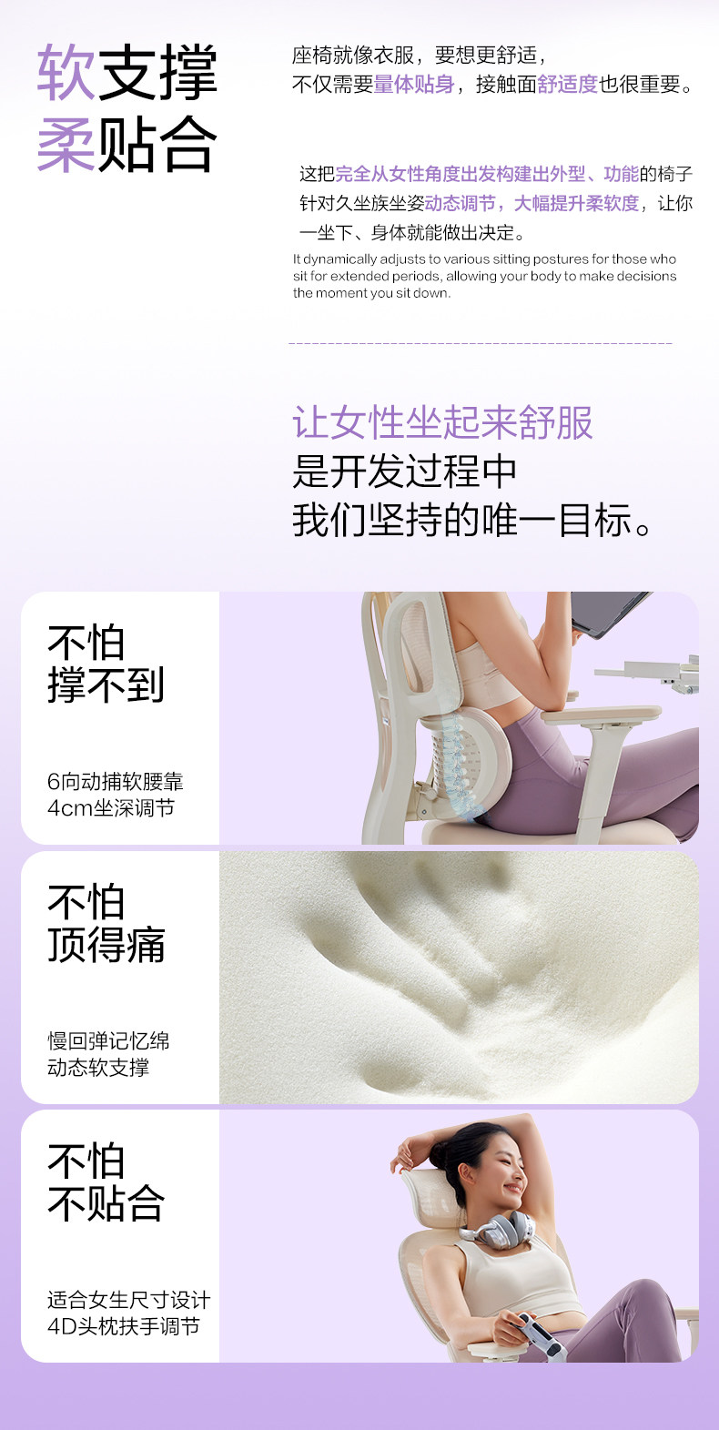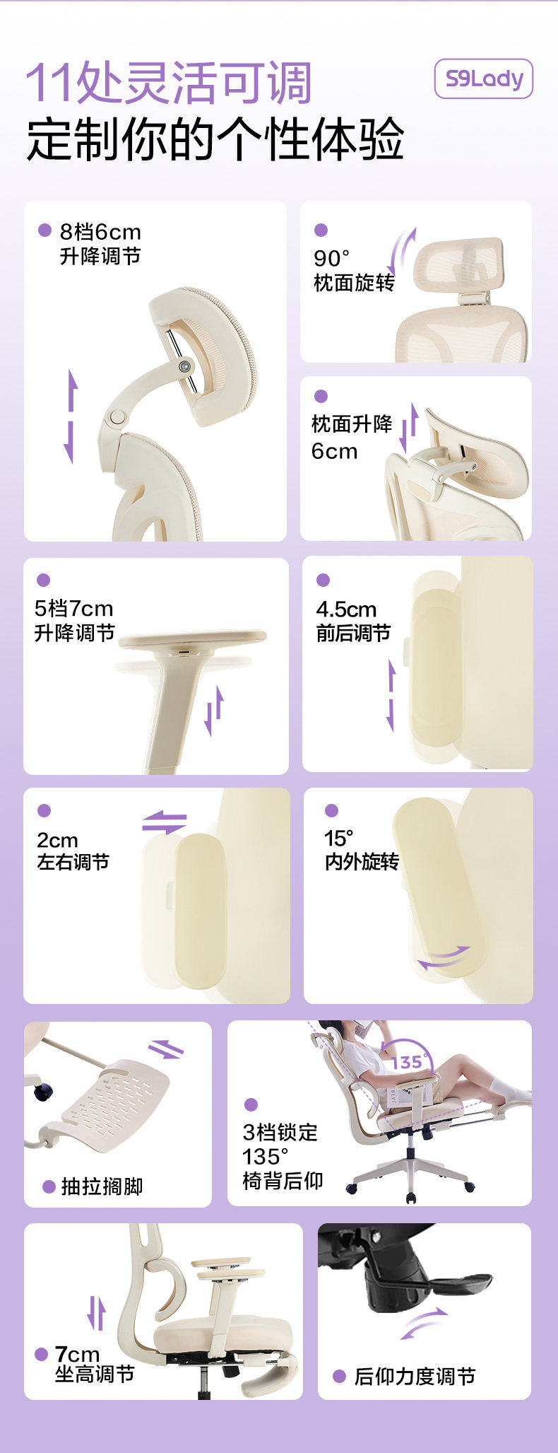 | Color Classification | ⭐New Product Launch⭐S9Lady Max Vanilla Rice (Memory Foam 6-Way Motion Capture Soft Lumbar Support + Petal Cushion + 4D Armrest + 3D Headrest + Seat Depth Adjustment) Without Pedals,⭐ New Product Launch ⭐ S9Lady Max Is Absolutely Purple (Memory Foam 6-Way Motion Capture Soft Lumbar Support + Petal Cushion + 4D Armrest + 3D Headrest + Seat Depth Adjustment) Without Pedals,⭐New Product Launch⭐S9Lady Max Vanilla Rice (Memory Foam 6-Way Motion Capture Soft Lumbar Support + Petal Cushion + 4D Armrest + 3D Headrest + Seat Depth Adjustment) with Footrest,⭐New Product Launch⭐S9Lady Max Is Absolutely Purple (Memory Foam 6-Way Motion Capture Soft Lumbar Support + Petal Cushion + 4D Armrest + 3D Headrest + Seat Depth Adjustment) with Pedals,Explorer Lady Milk Coffee Apricot (3D Embracing Soft Lumbar Support + Petal Cushion + 4D Headrest + Seat Depth Adjustment) Without Pedals,Explorer Lady Rose Pink (3D Embracing Soft Lumbar Support + Petal Cushion + 4D Headrest + Seat Depth Adjustment) Without Pedals,Explorer Lady Milk Coffee Apricot (3D Embracing Soft Lumbar Support + Petal Cushion + 4D Headrest + Seat Depth Adjustment) with Footrest,Explorer Lady Rose Pink (3D Embracing Soft Lumbar Support + Petal Cushion + 4D Headrest + Seat Depth Adjustment) with Footrest,Official Flagship,Quality Assurance,Add to Favorites and Cart,Priority Delivery |