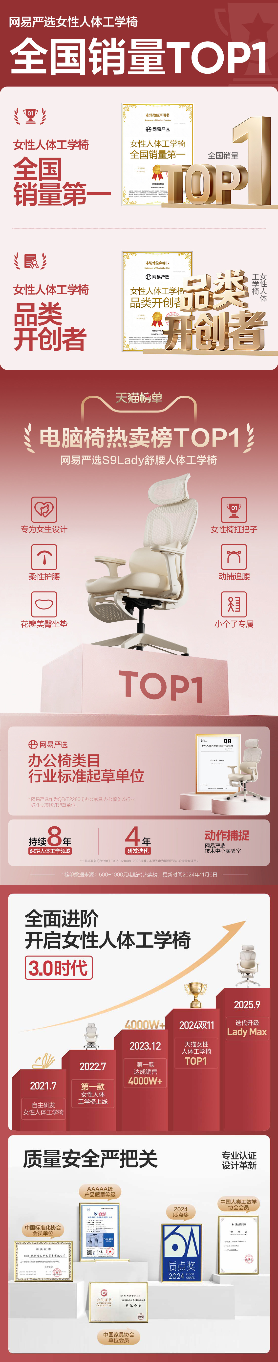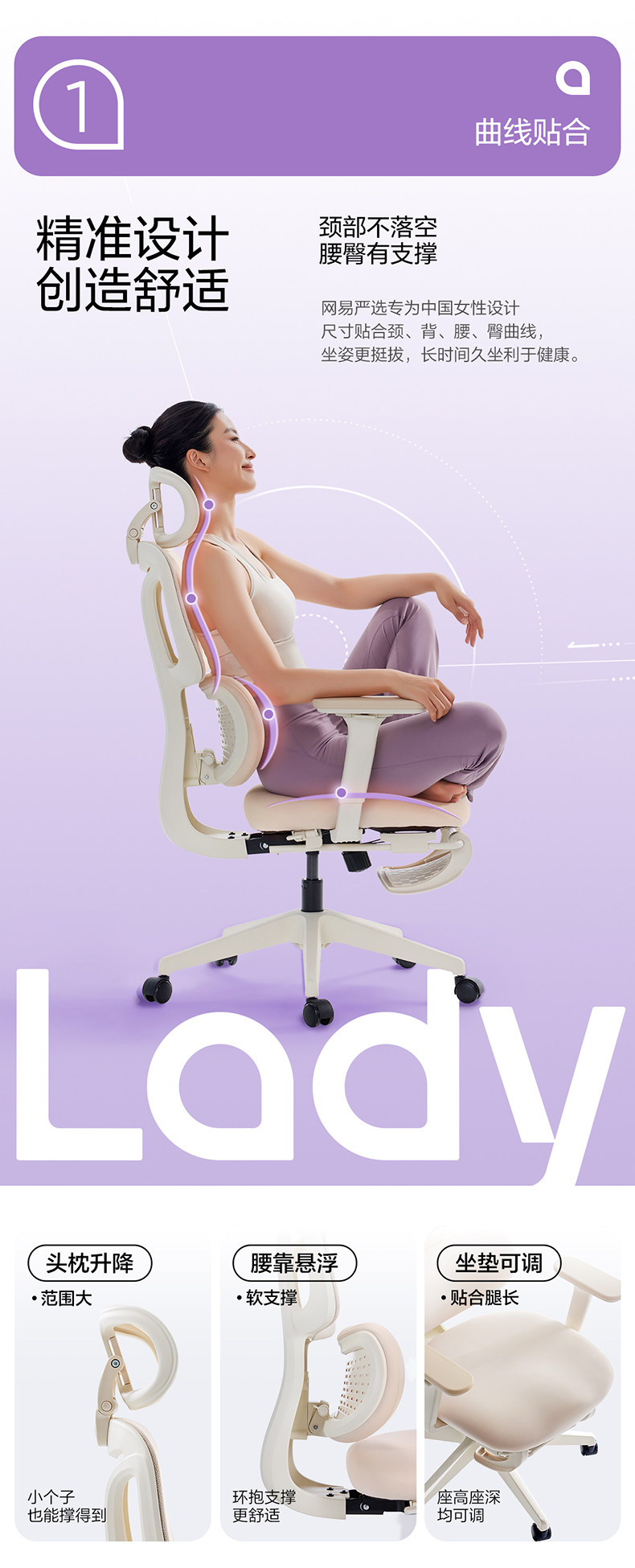 Netease Carefully Selects the S9Ladymax Ergonomic Chair for Women, a Study Chair, Computer Chair, Suitable for Home Use and Long Periods of Sitting in the Office