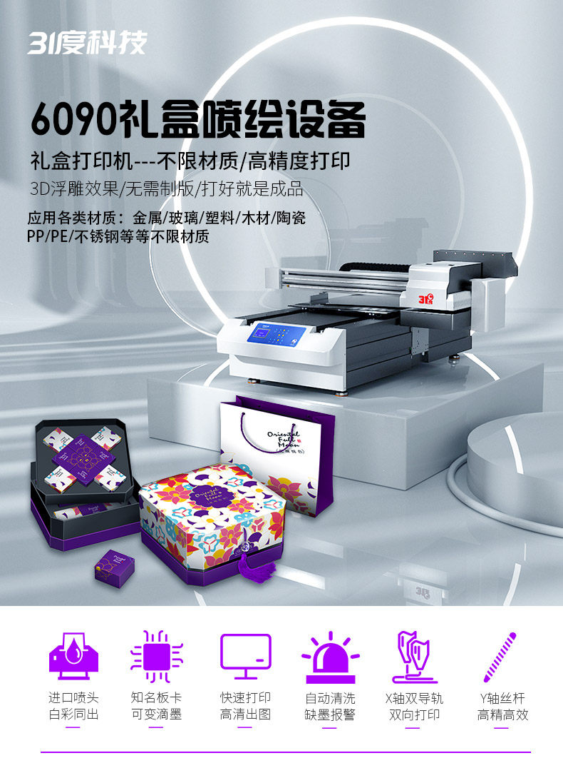 31 Degree Uv Printer Large Gift Box Wine Box Tea Box Flat Cylindrical Packaging Box Batch Inkjet Printing Machine