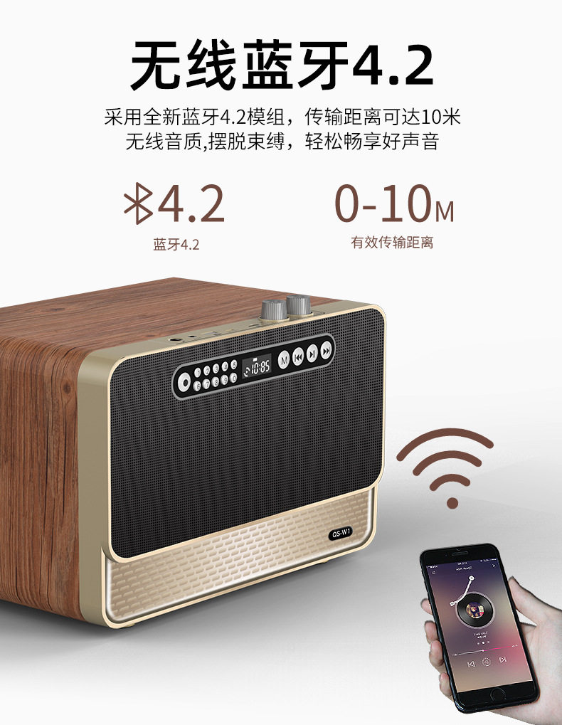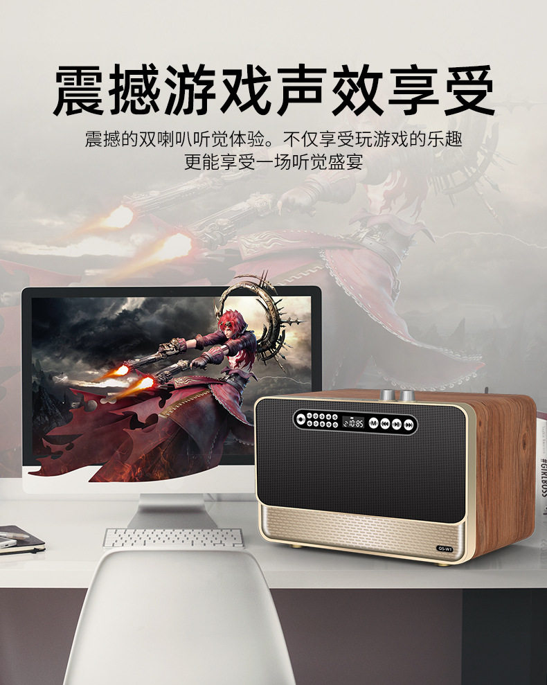 Daoubo W1 Wooden Wireless Bluetooth Speaker Hifi High-Power Volume Subwoofer Retro Radio Speaker
