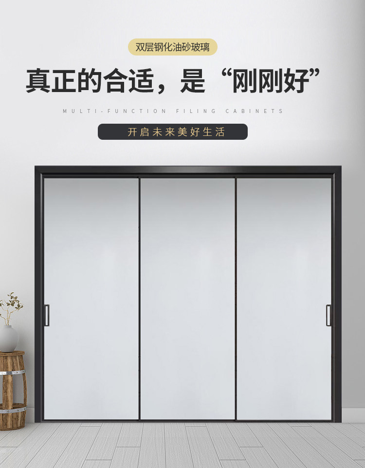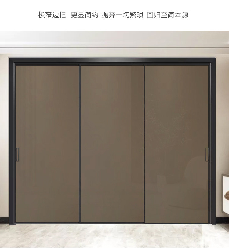 Extremely Narrow Kitchen Sliding Door, Extremely Narrow Frame, Oil-Sand Titanium-Magnesium Alloy Tempered Glass Door, Balcony Three-Four-Way Linkage, Living Room