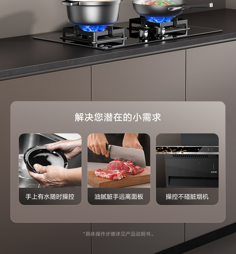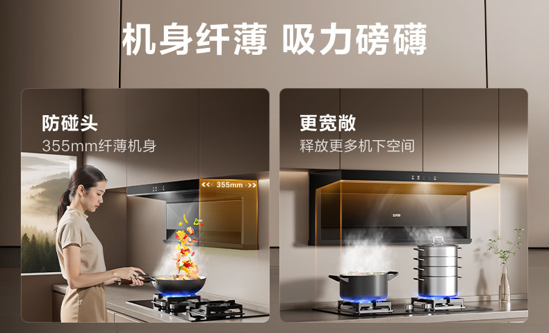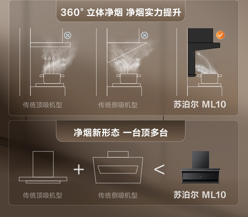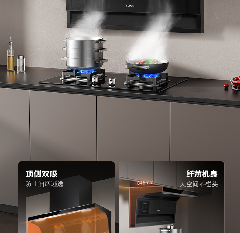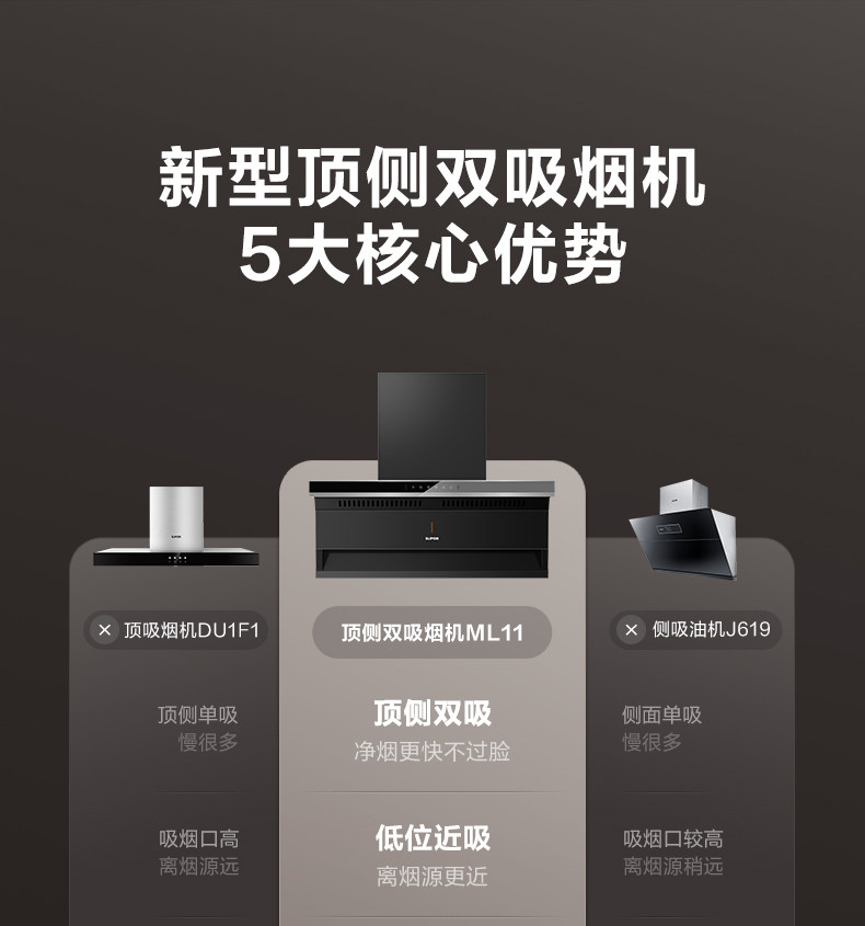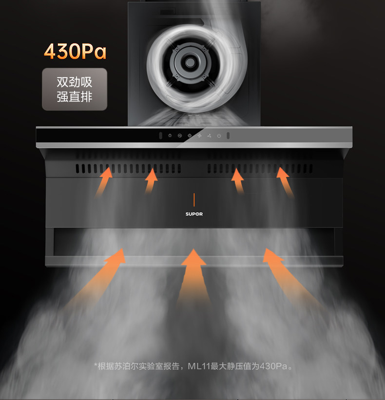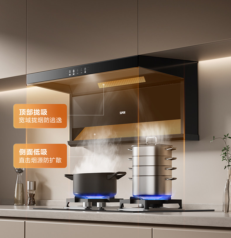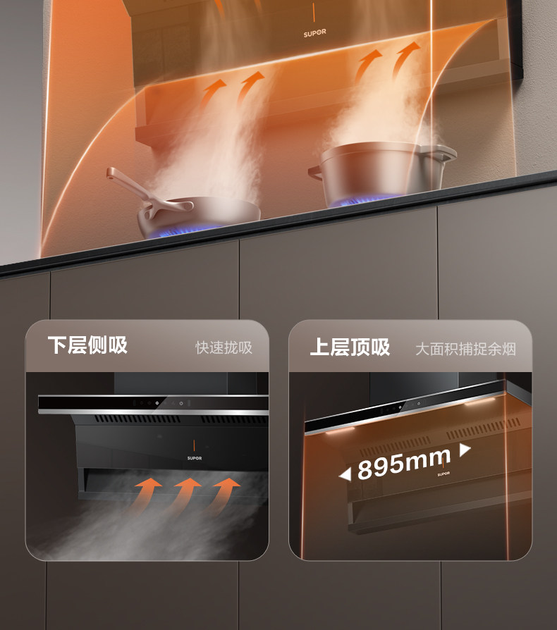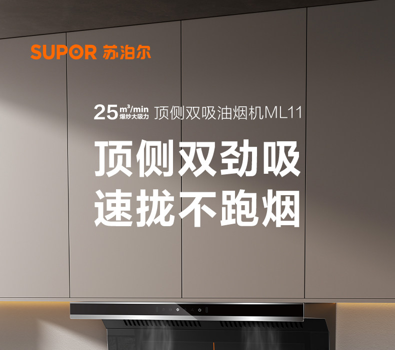 Supor Ml10 Range Hood for Home Kitchen with Strong Suction, Ml11 Range Hood with Top and Side Dual Suction, Stove Set