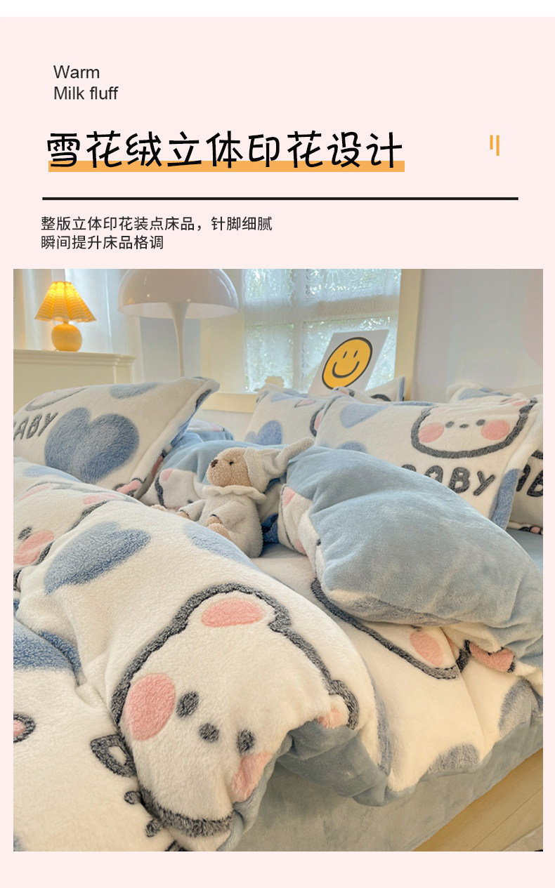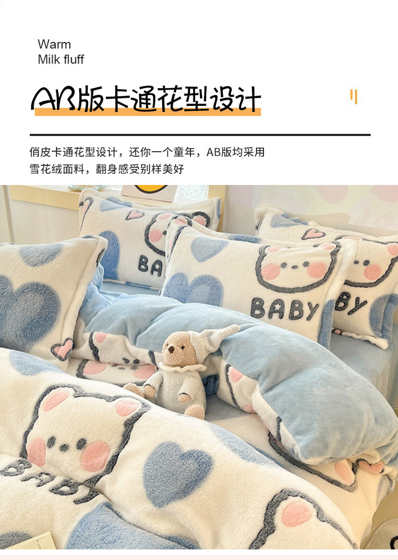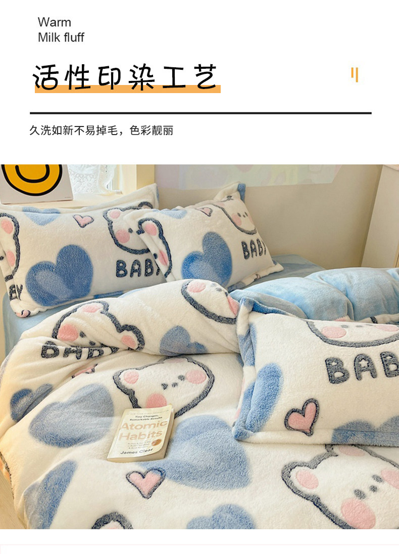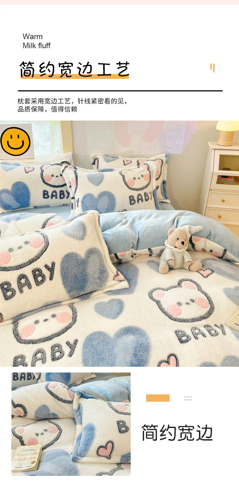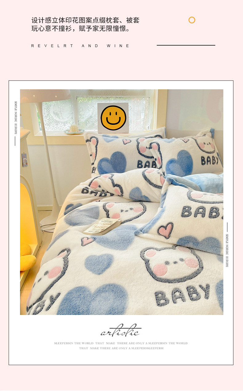 Winter Milk Coral Velvet Four-Piece Bedding Set, Flannel Bedding, Plus Plush Quilt Cover, Bed Sheet, Dormitory Three-Piece Set