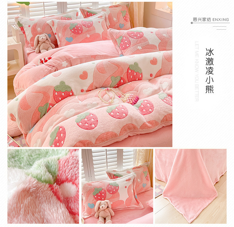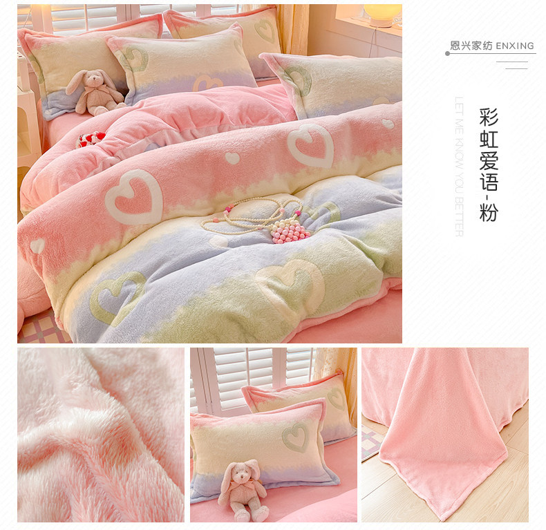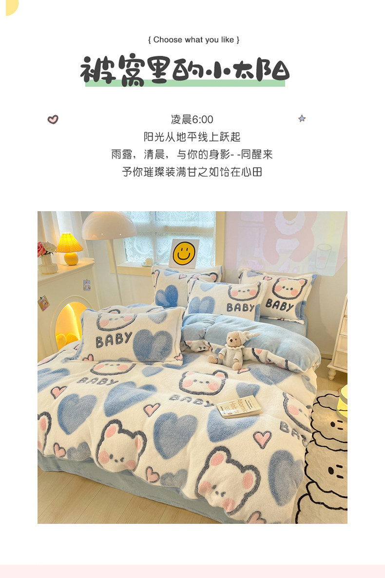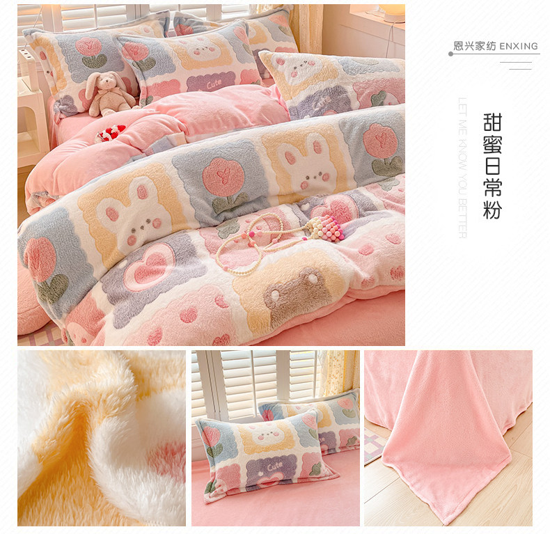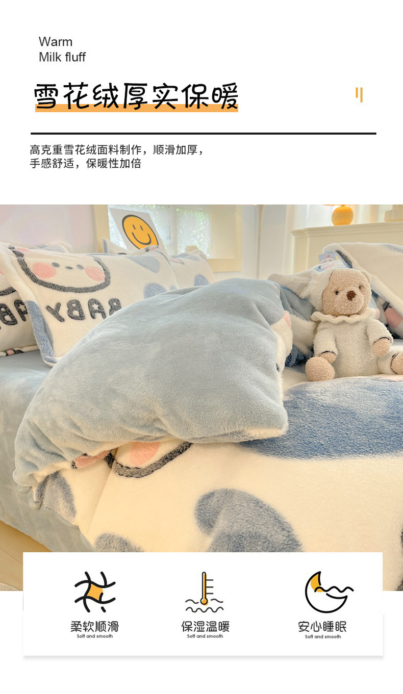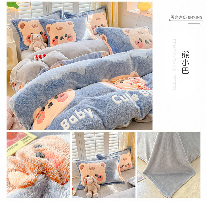 Winter Milk Coral Velvet Four-Piece Bedding Set, Flannel Bedding, Plus Plush Quilt Cover, Bed Sheet, Dormitory Three-Piece Set