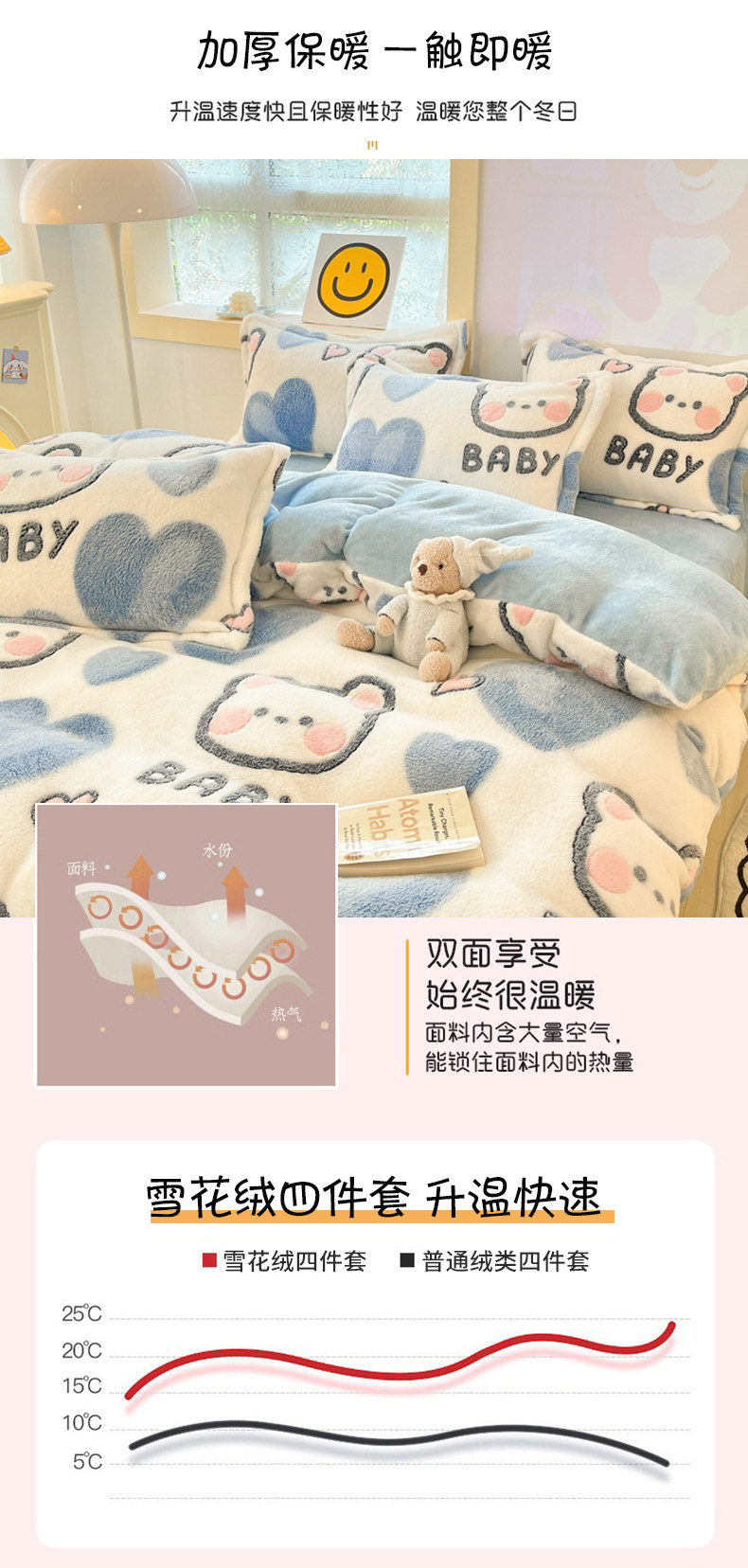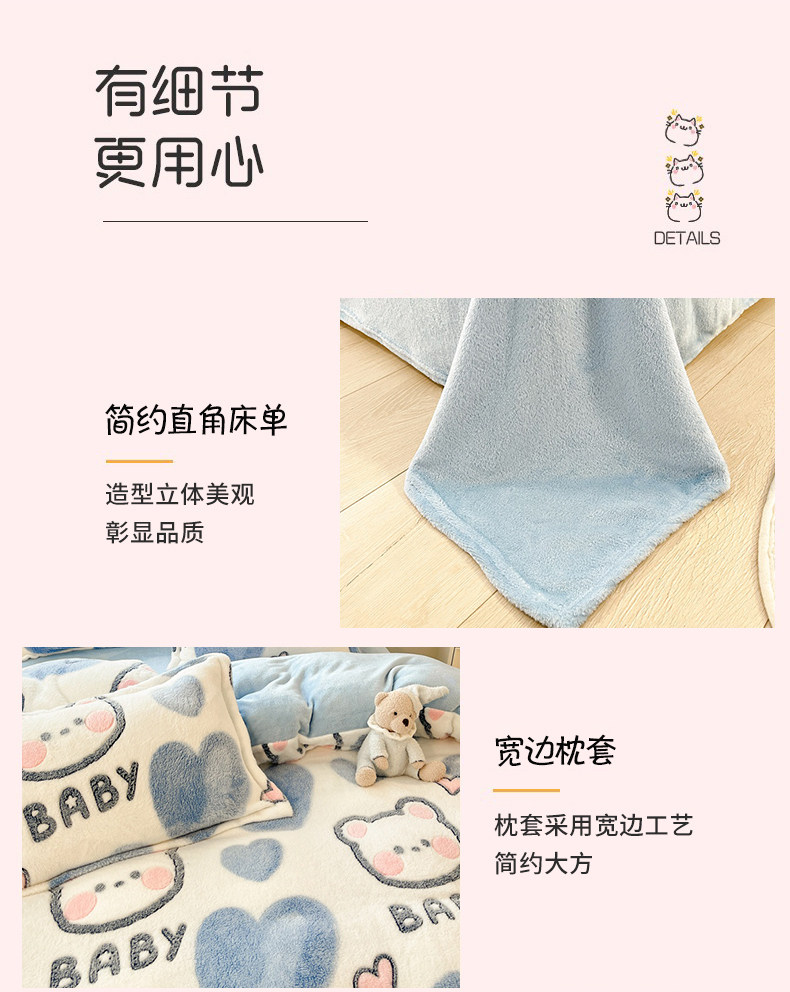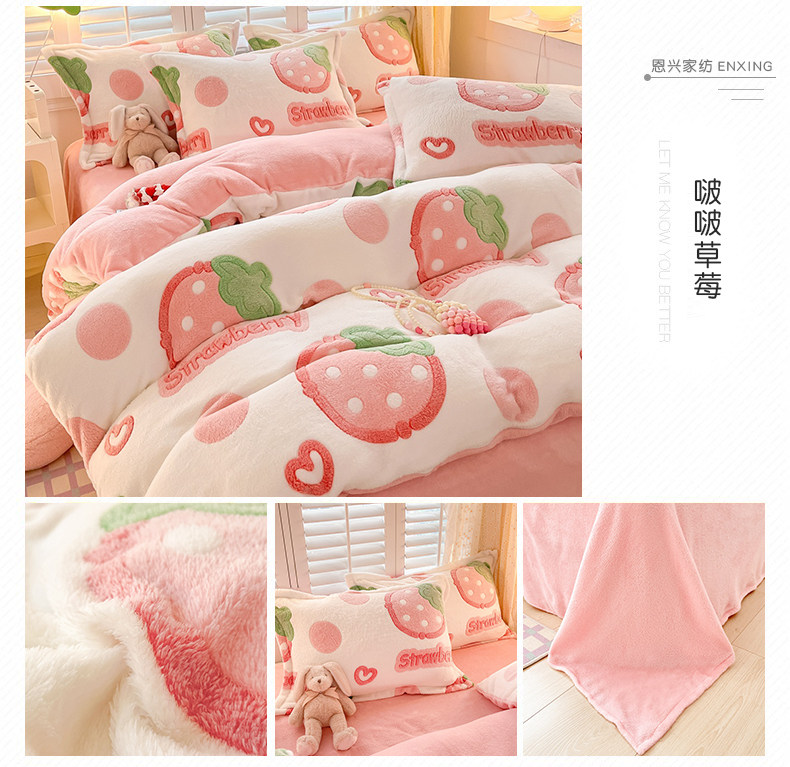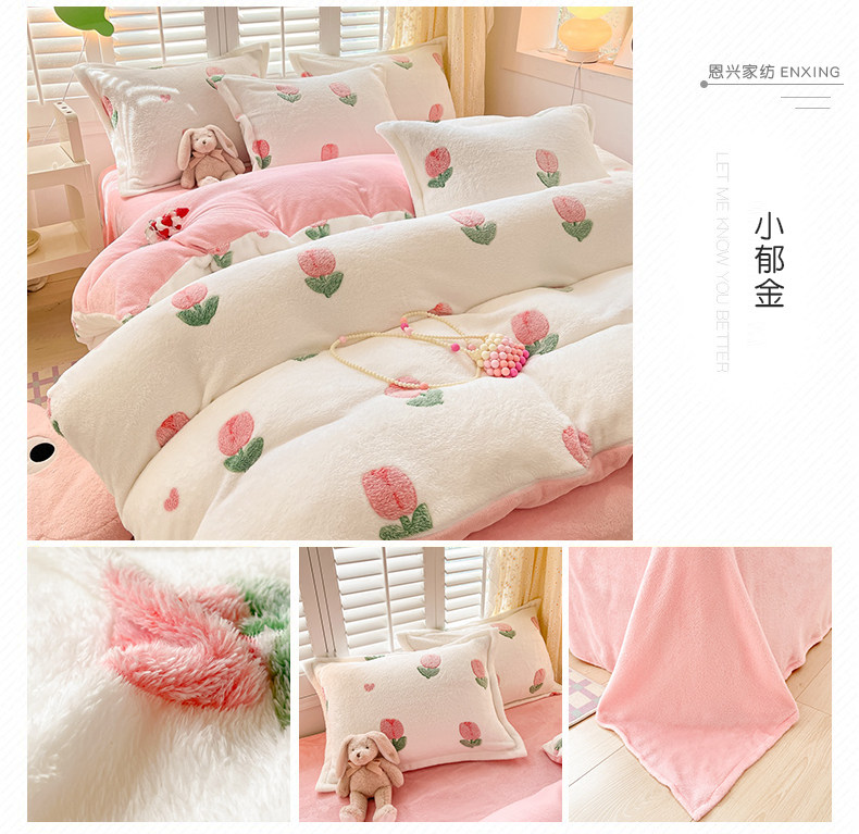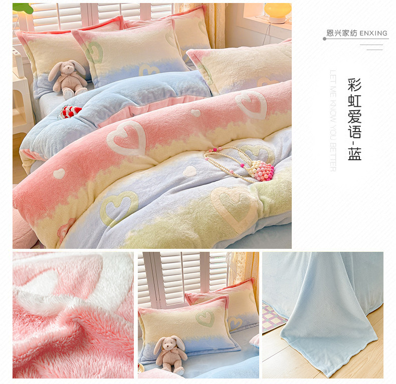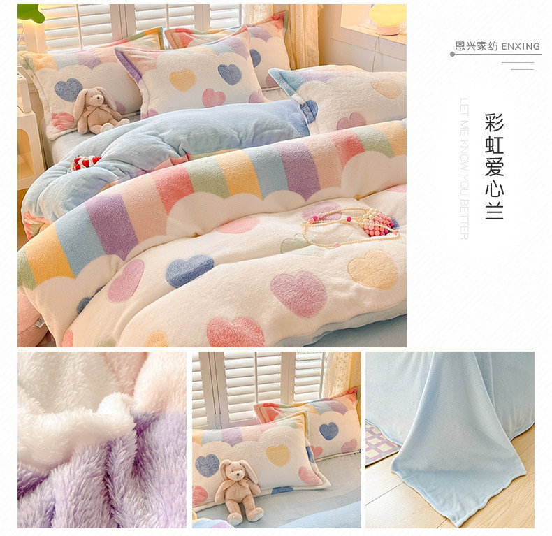 Winter Milk Coral Velvet Four-Piece Bedding Set, Flannel Bedding, Plus Plush Quilt Cover, Bed Sheet, Dormitory Three-Piece Set