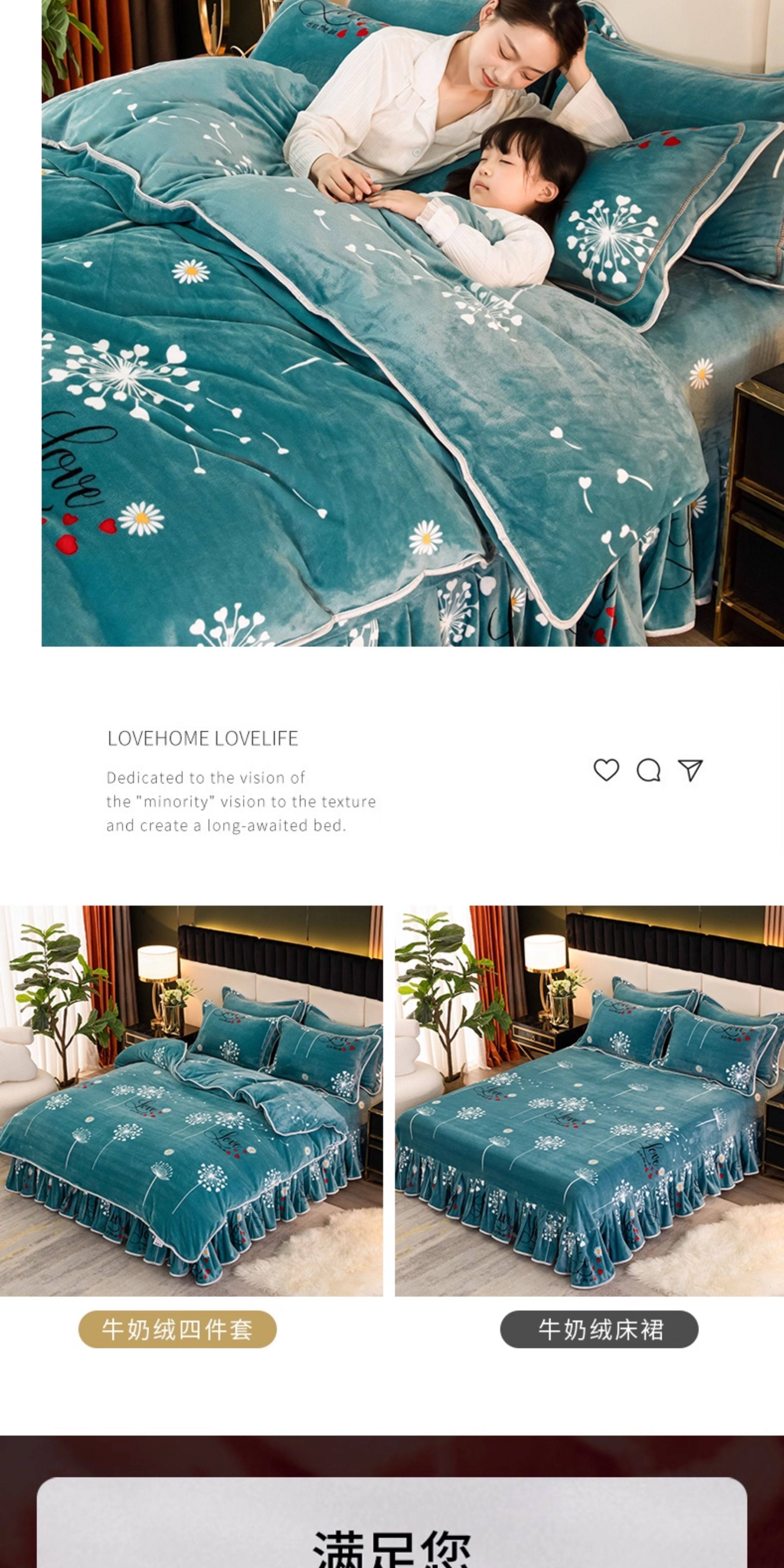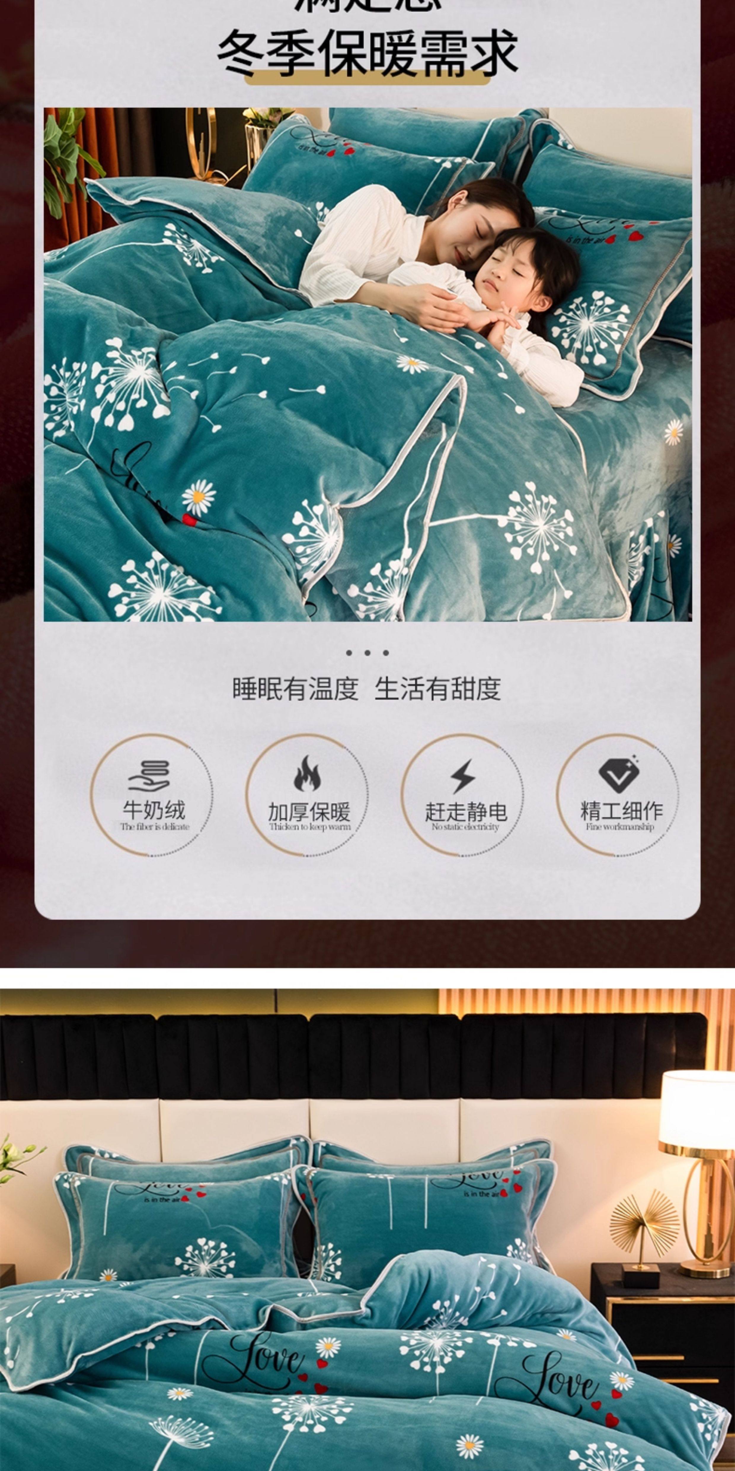Winter Golden Mink Milk Velvet Four-Piece Set, Thickened Double-Sided Flannel Bed Sheet, Flannel Coral Fleece Duvet Cover for Bed Use