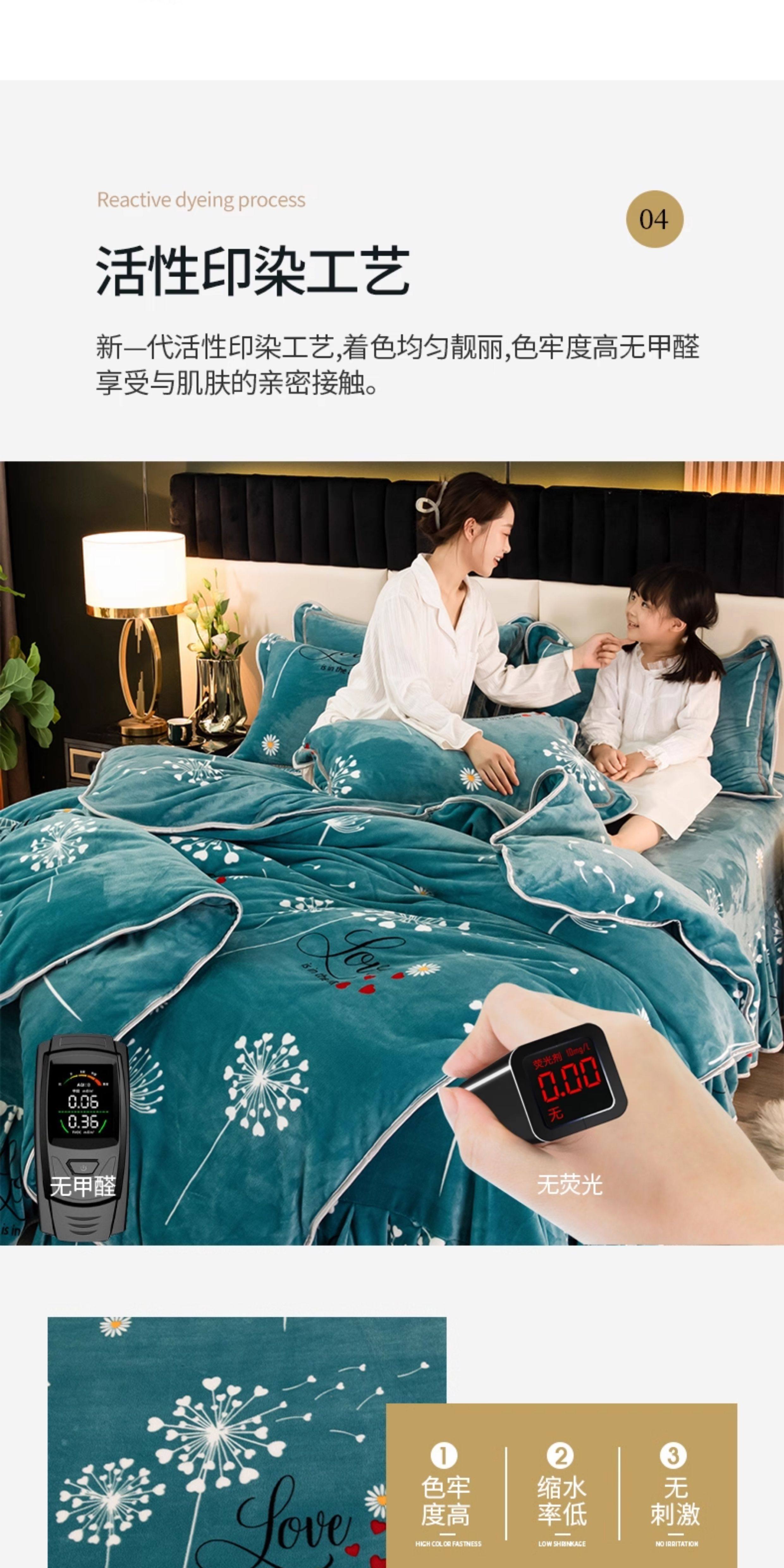 | Applicable Bed Size | 1.5m Bed Four-Piece Set [Quilt Cover 200*230Cm/Weight about 4.25kg],1.8m Bed Four-Piece Set [Quilt Cover 200*230Cm/Weight about 4.25kg],2.0m Bed Four-Piece Set [Quilt Cover 220*240Cm/Weight about 4.4kg |