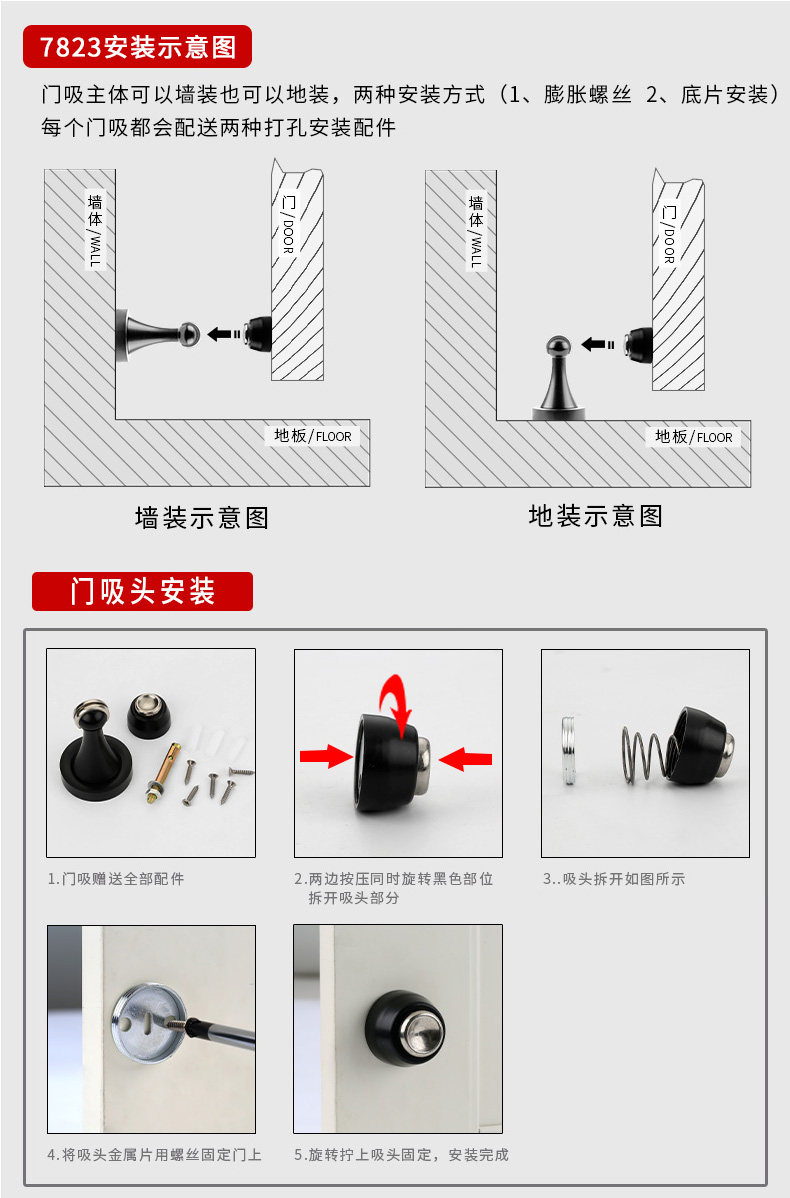 | Color Classification | Door Catch[Stainless Steel],Door Catch[Black],Door Catch[Pearl Black],Door Catch[Brushed Copper],Door Catch[Dumb Coffee],Ground Sucking[Stainless Steel],Ground Sucking[Black],Ground Sucking[Pearl Black],Ground Sucking[Brushed Copper],Ground Sucking[Dumb Coffee] |