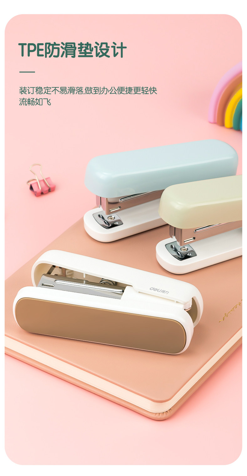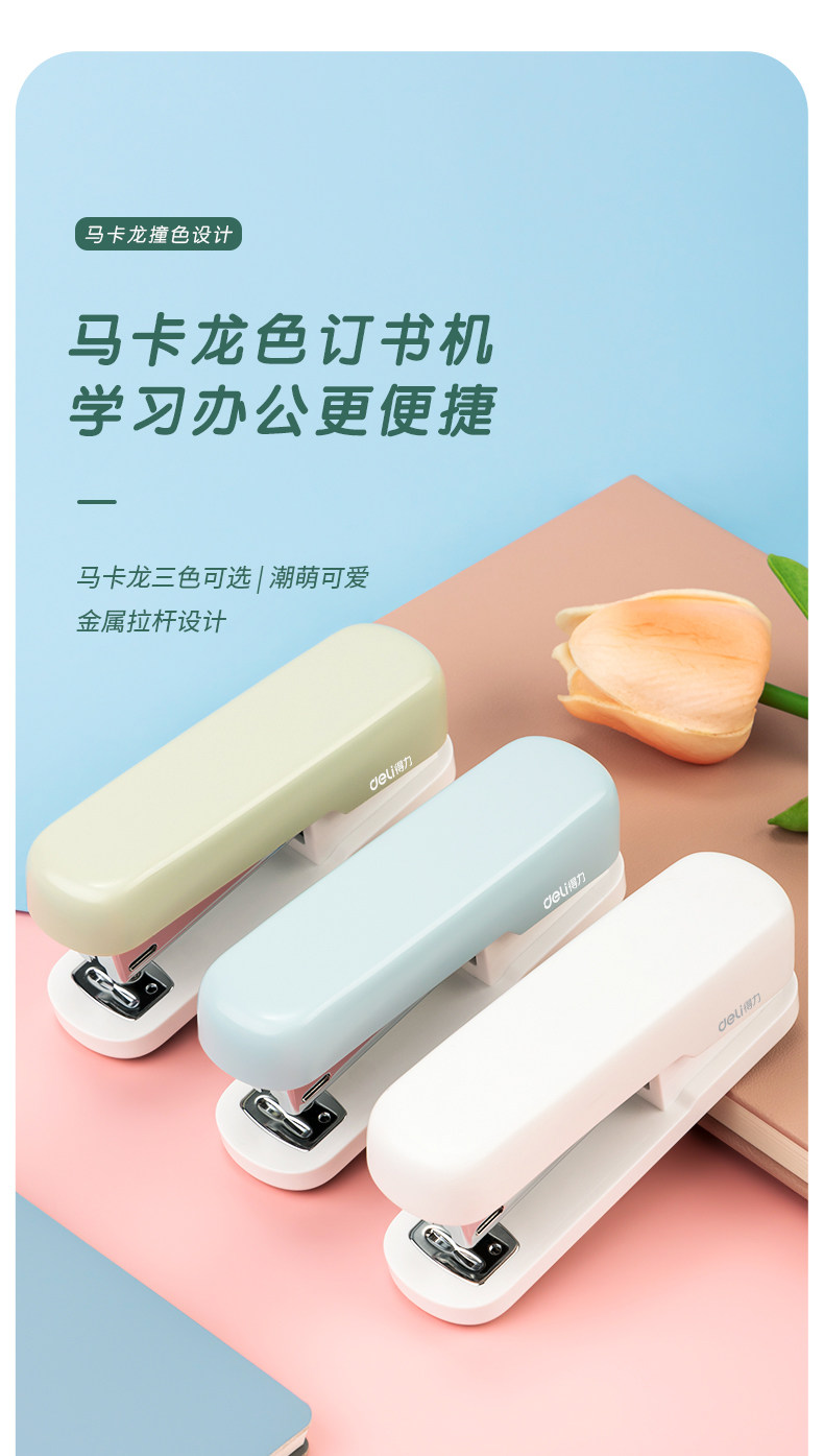 Deli Stapler for Students, Office, and Home Use, Macaron Color, Multifunctional Large Stationery Stapler, Binding Machine, Home Stapler, Stapler with Staples, Labor-Saving 12-Size Stapler, Office Supplies