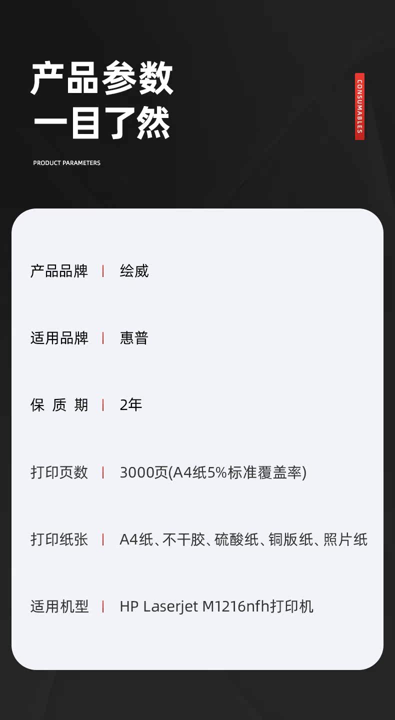 Color Classification [2000 Pages] M1216Nfh Standard Version Toner Cartridge,[3000 Pages] M1216Nfh Large Capacity Toner Cartridge,[6000 Pages] M1216Nfh Large Capacity Toner Cartridge + 1 Toner,[12000 Pages] M1216Nfh Large Capacity Toner Cartridge 4 Pack,[30000 Pages] M1216Nfh Large Capacity Toner Cartridge 10 Pack,[10000 Pages] M1216Nfh Ultra-Large Capacity Toner Cartridge 1 Pack