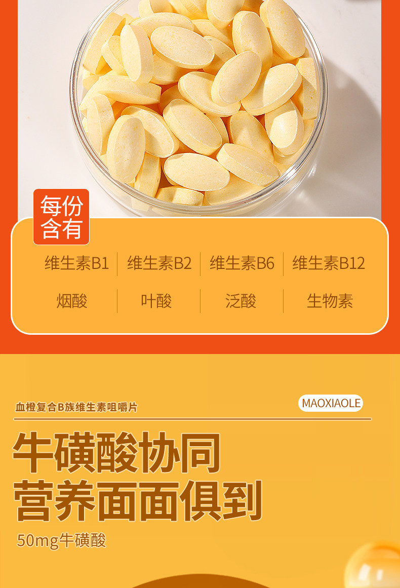 Blood Orange Complex B Vitamin Chewable Tablets Official Flagship Store Genuine Product to Improve Metabolism, Including Multiple B1, B2, B6, B12