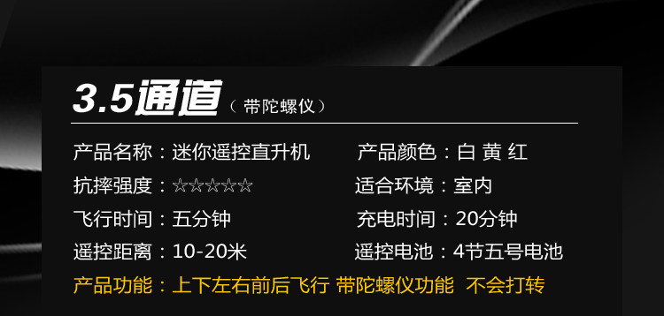 | Color Classification | 3.5-Channel Mini Stunt Helicopter[White],3.5-Channel Mini Stunt Helicopter[Yellow],3.5-Channel Mini Stunt Helicopter[Red],Competition Package + Free Set of Time Travel Rings[Color Can Be Left as a Message],Upgraded Hover Fixed Height Version + Storage Remote Control All-In-One Machine[White],Upgraded Hover Fixed Height Version + Storage Remote Control All-In-One Machine[Yellow],Upgraded Hover Fixed Height Version + Storage Remote Control All-In-One Machine[Red],Upgraded Fixed Height + Competition Package + Free Set of Drift Rings[Color Can Be Left as a Message] |