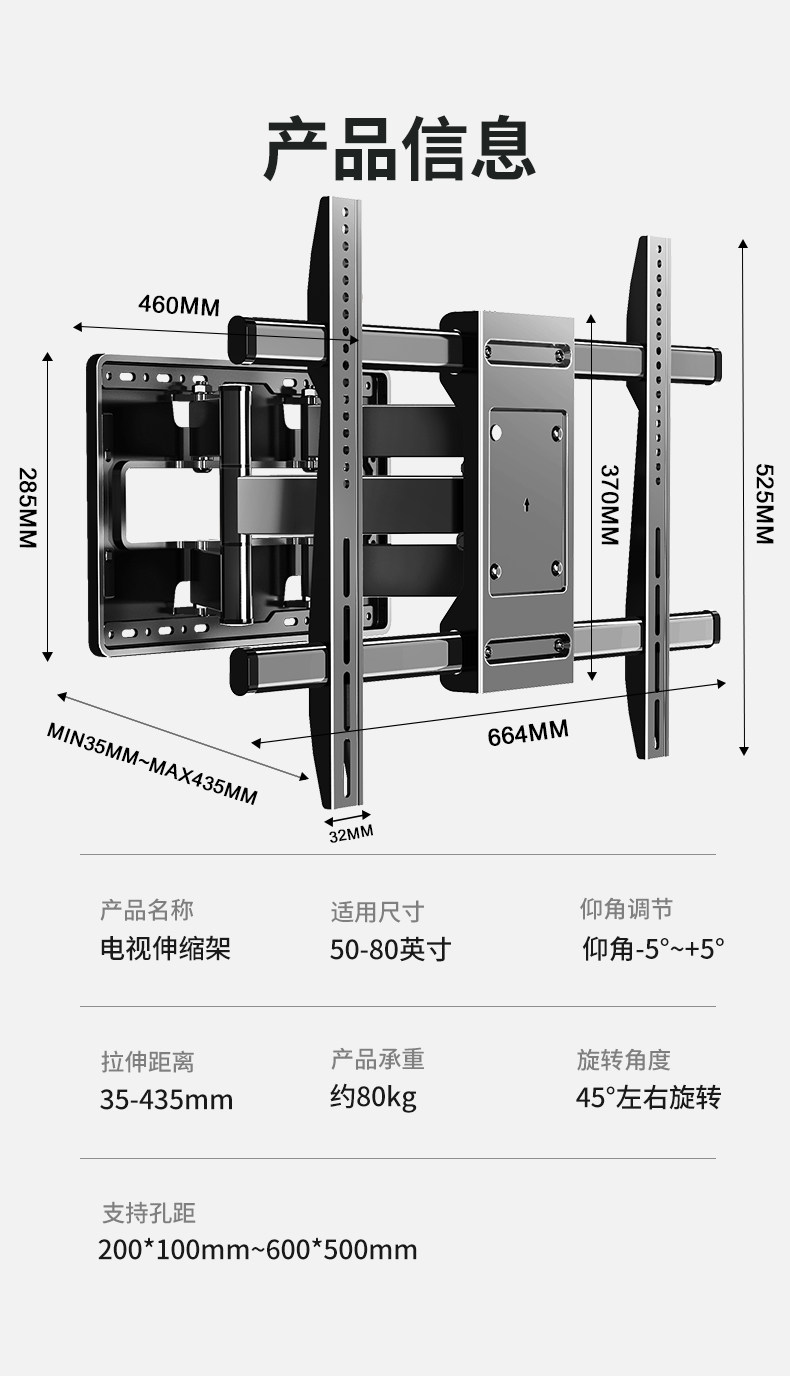 Universal Tv Mount Telescopic Rotating Bracket Wall-Mounted Suitable for Hisense, Tcl, Xiaomi and Other 75-85 Inch 2492