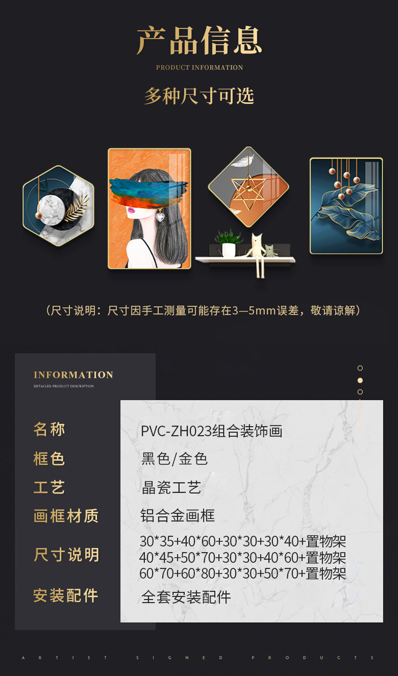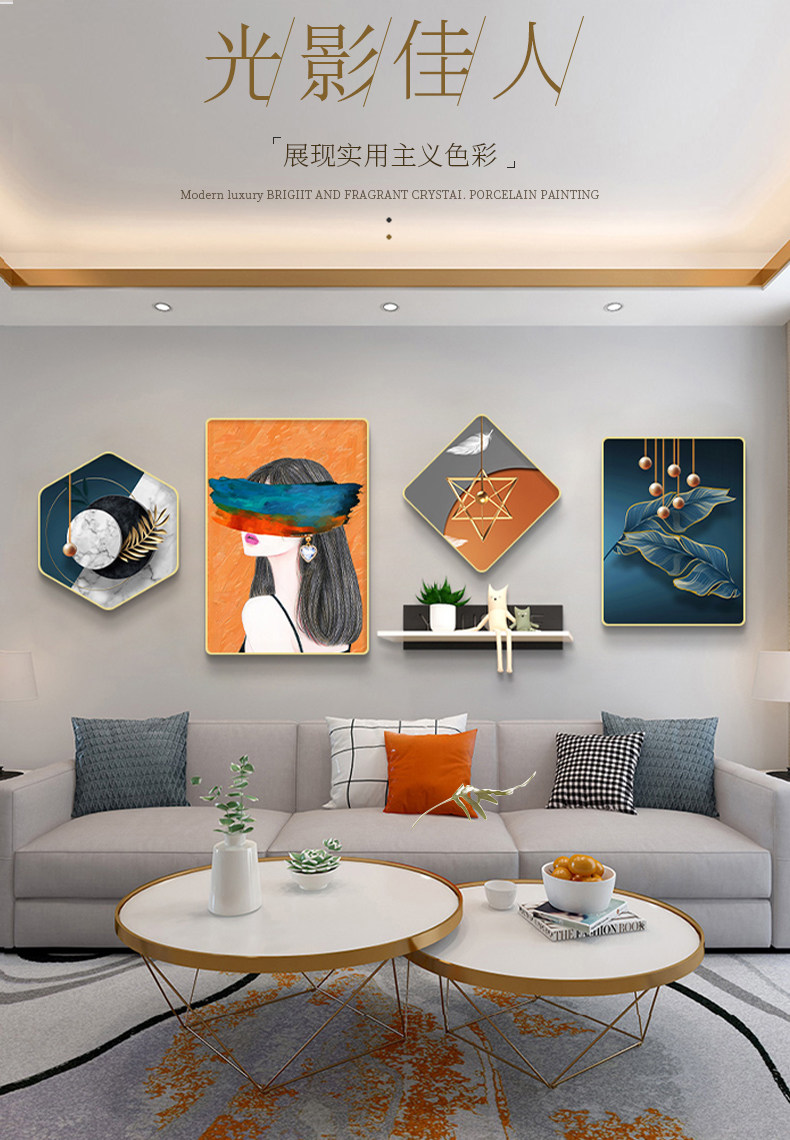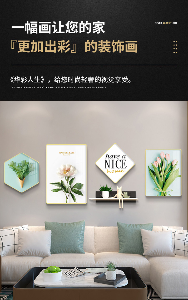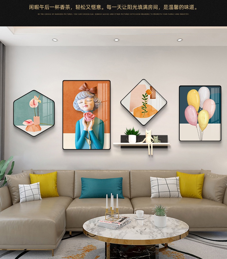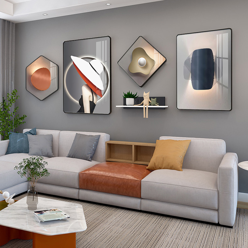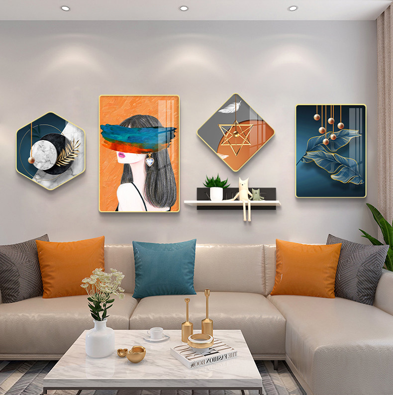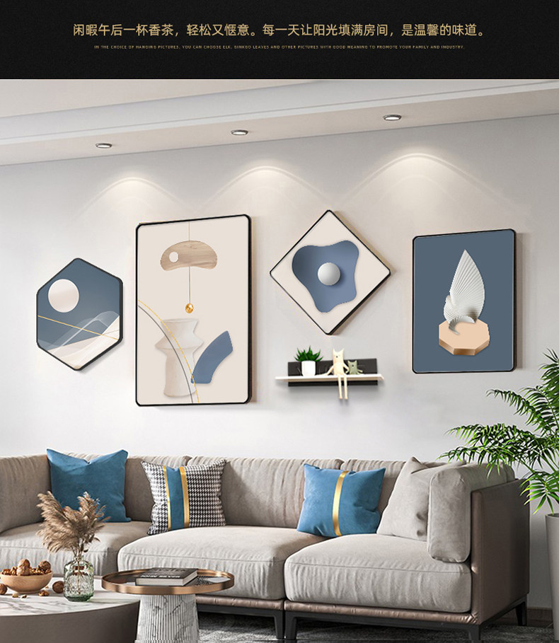 Nordic Light Luxury Living Room Decorative Painting Sofa Background Wall Painting Simple Modern Creative High-End Atmospheric Combination Hanging Painting