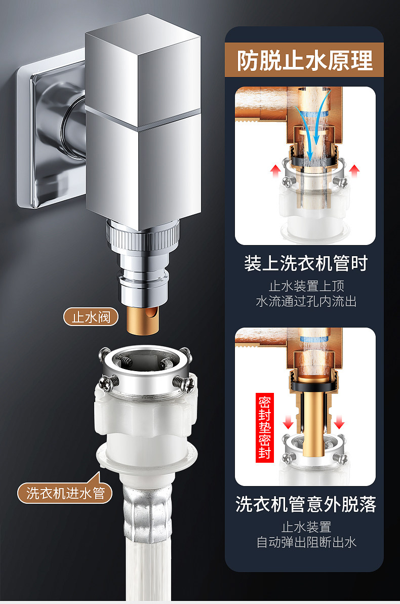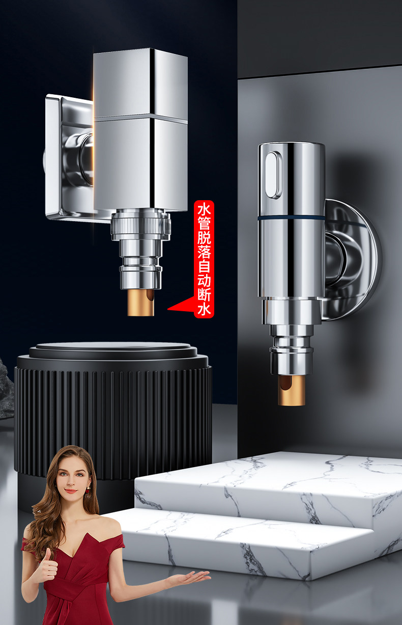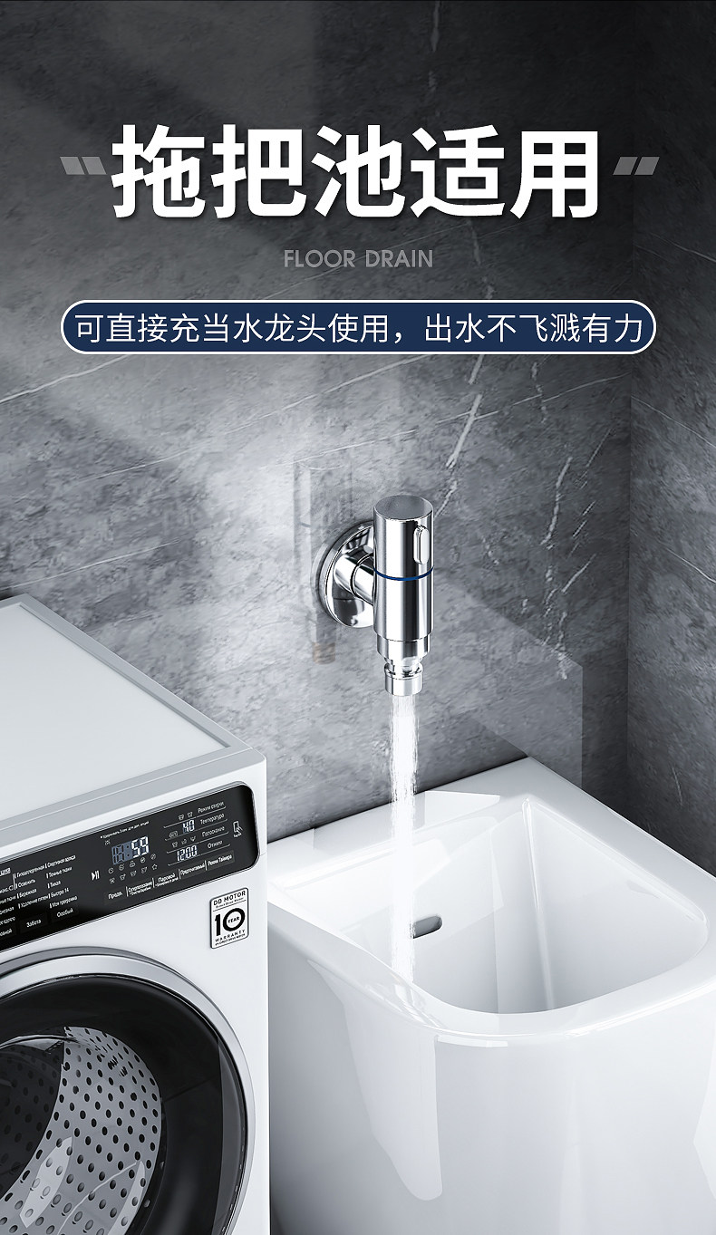All-Copper Washing Machine Faucet Household Mini 4-Point 6-Point Thread Automatic Water Stop Nozzle Round Square Space-Saving